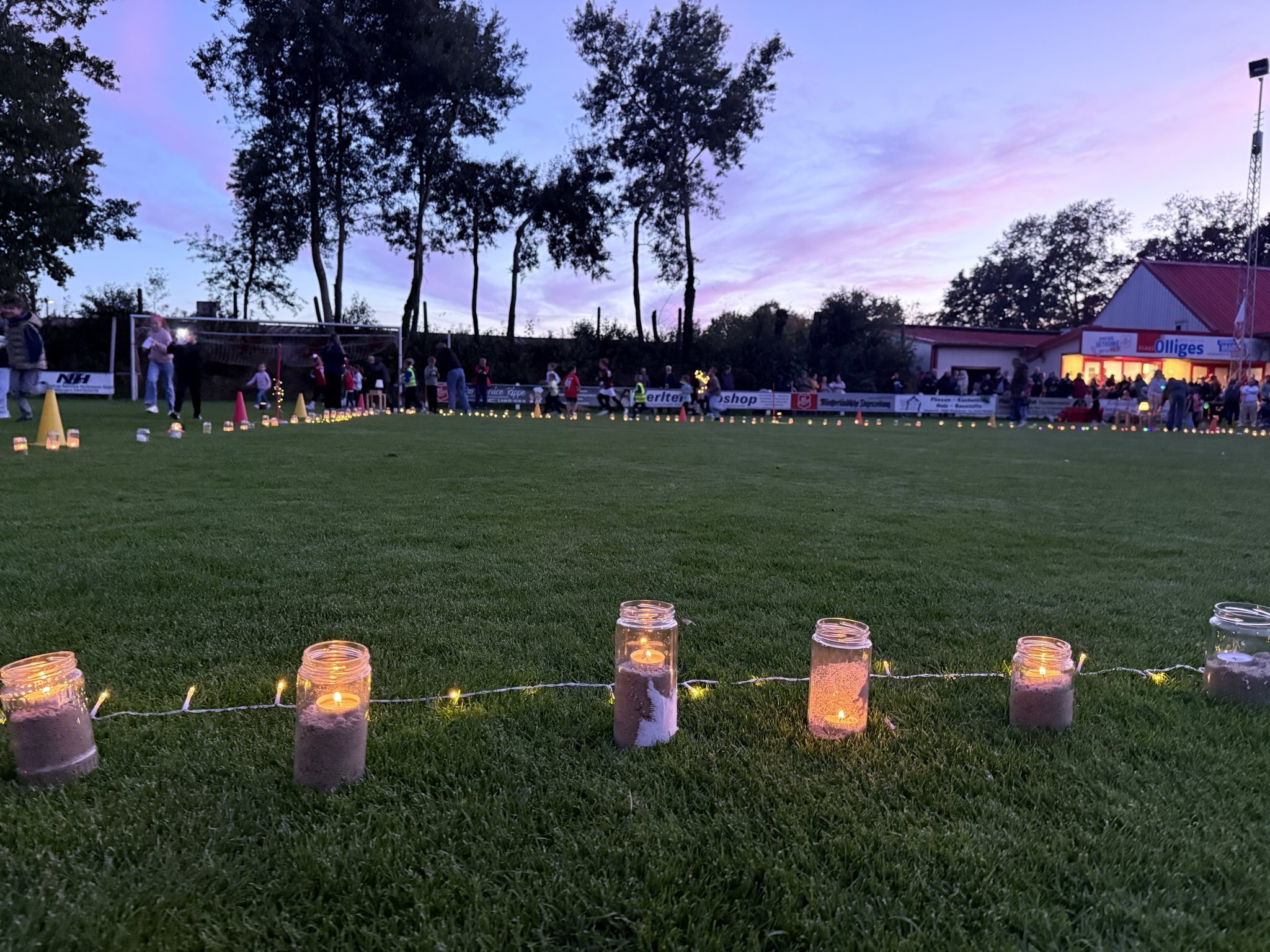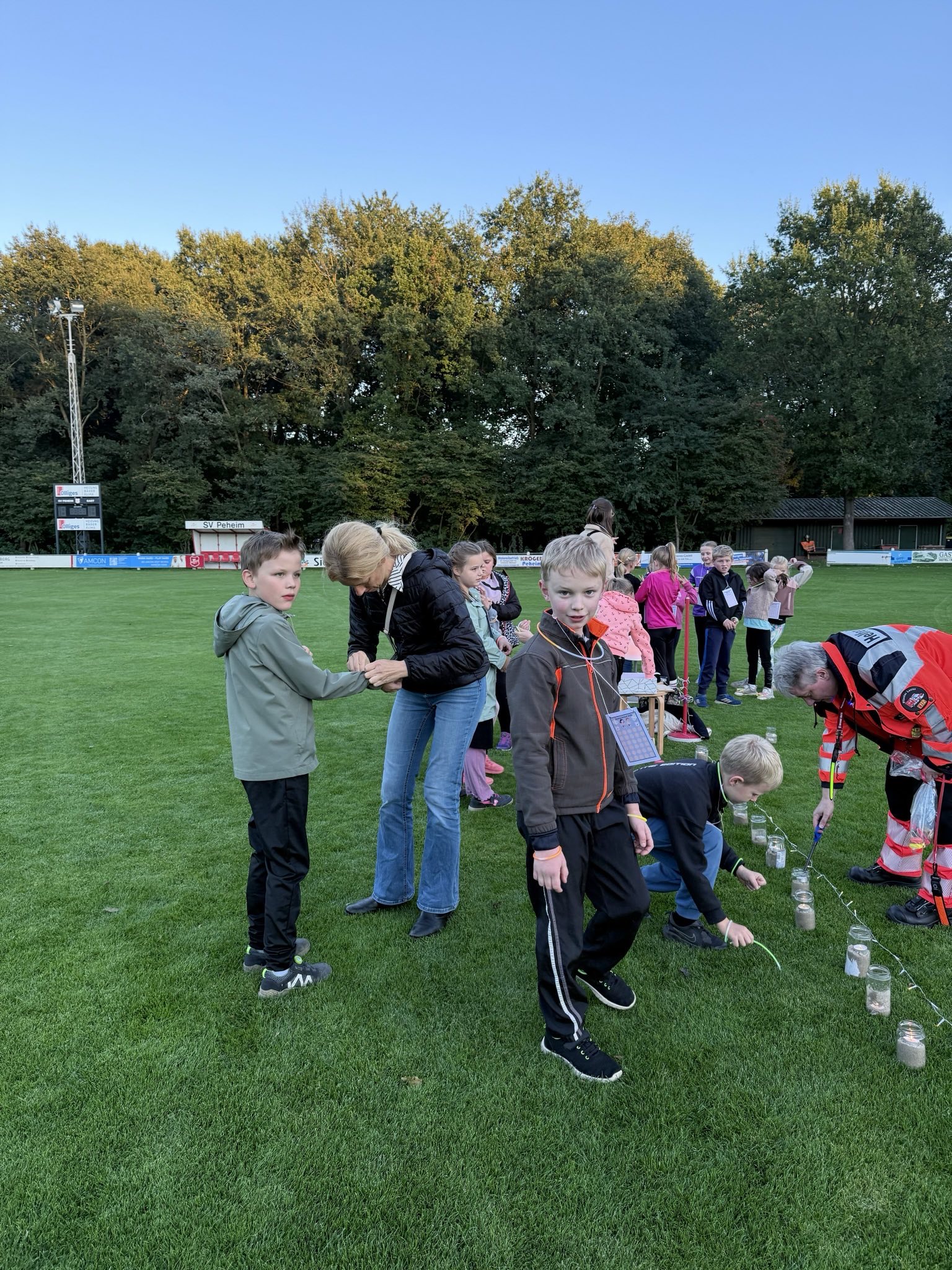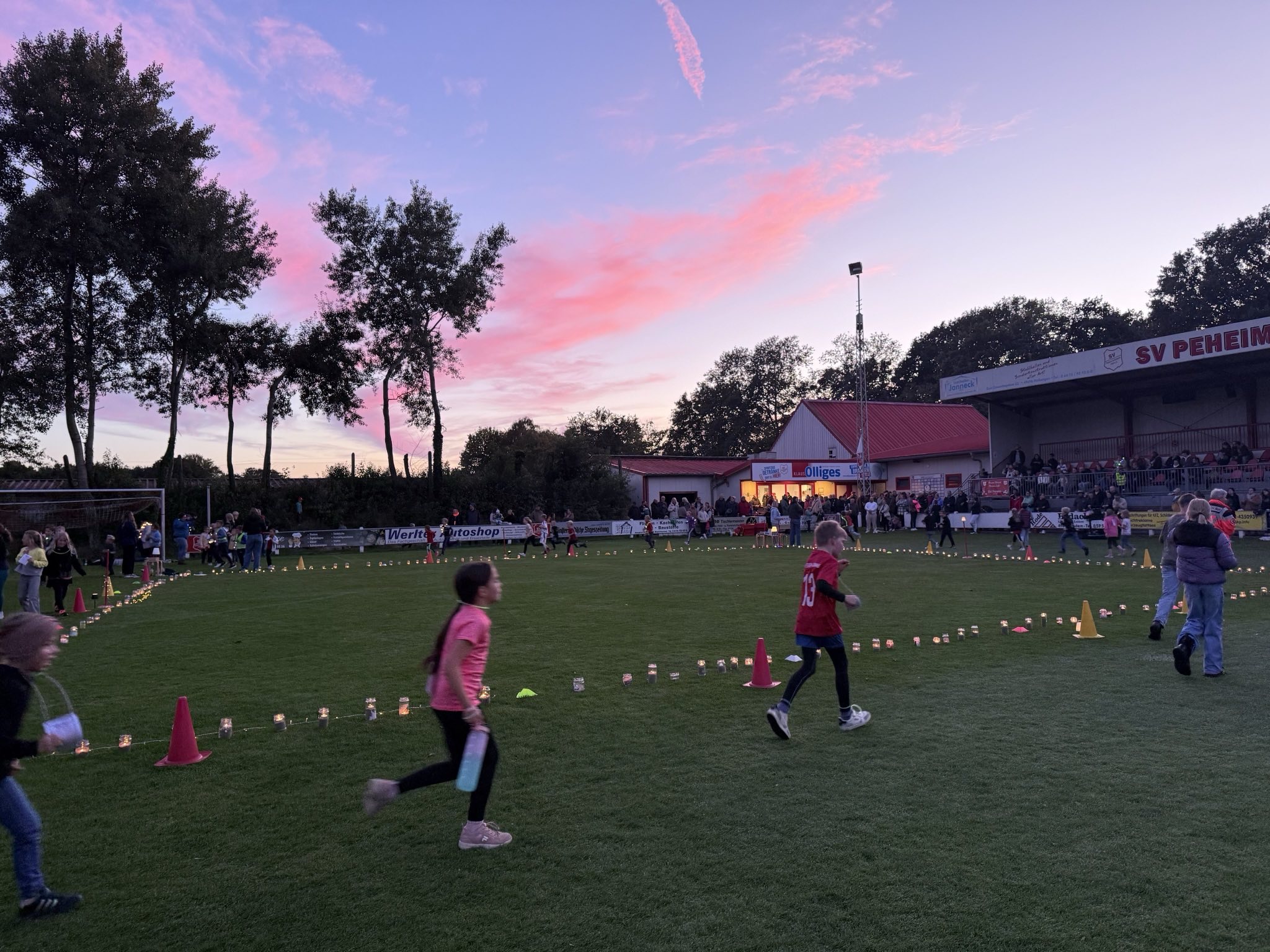 Unter dem Motto “Licht in die Welt bringen” veranstaltete die Grundschule Peheim am 24.09.2025 einen Sponsorenlauf zu Gunsten des ambulanten Hospitzdienst im Landkreis Cloppenburg und der Grundschule Peheim. Auf dem Sportgelände des Peheimer Sportvereins wurden eine Strecke von 80 m abgesteckt und mit Lichtern markiert, denn das Besondere an dem Spornsorenlauf war, dass dieser in der Abenddämmerung stattfand. Alle Teilnehmer haben sich mit Knicklichtern und anderen Lichtelementen ausgestattet, um sichtbar zu bleiben. Die Schüler und Schülerinnen waren beim Laufen hoch motiviert und wollten möglichst viele Runden schaffen. Einige Kinder schafftten sogar über 60 Runden. Insgesamt haben die Kinder eine beachtliche Spendensumme erlaufen.