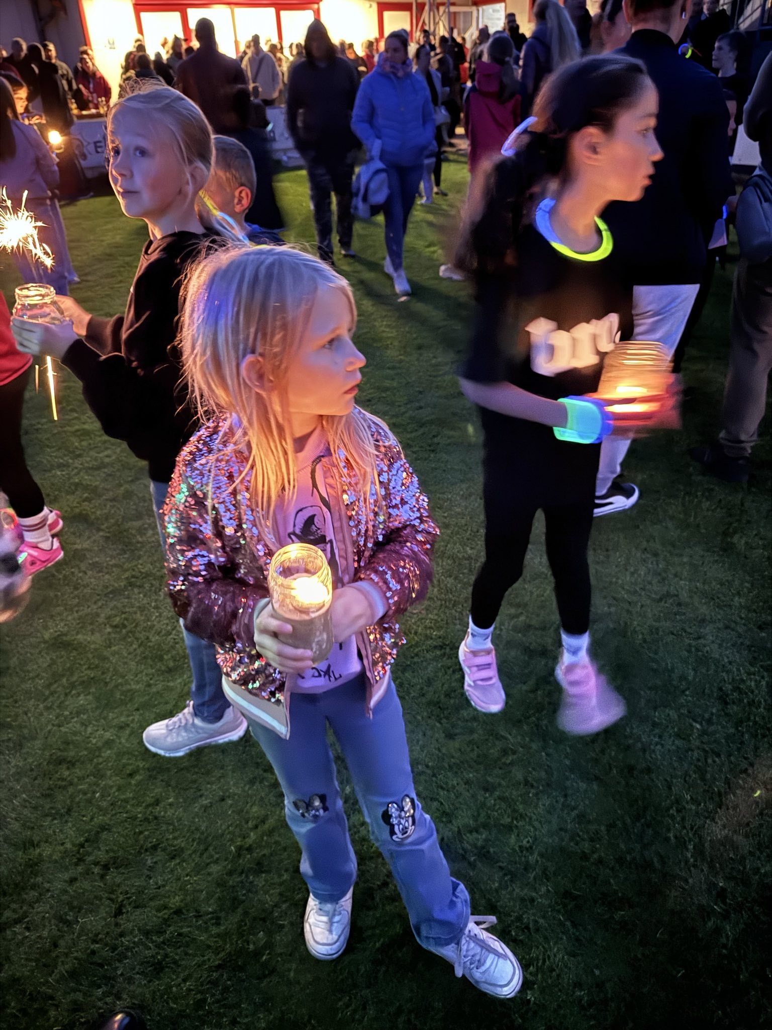 Der Förderverein unterstützte die Aktion mit dem Verkauf von Würstchen und Getränken. Ein weiteres Highlight des Abends war der Auftritt des Schulchors, dessen Gesang in einer besonderen Atmosphäre, denn alle Kinder und Eltern entzündeten Wunderkerzen, besonders wirkungsvoll klang.