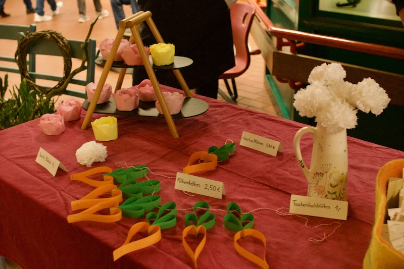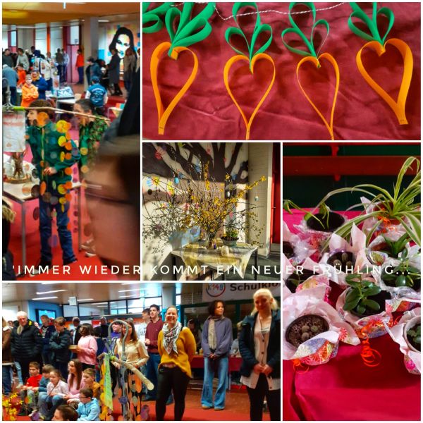 Pünktlich um 09:00Uhr strömten zahlreiche Besucher in die Schularena, die sich zu einem freitäglichen Frühlingsmarkt verwandelt hatte. Mit einem verbindendem Lied und der freudigen Ansprache durch die Schulleitung war das Fest eröffnet; in buchstäblicher Windeseile entstand beim Schauen – Kaufen – Genießen – einem Wiedersehen mit guten Gesprächen und bloßem Verweilen eine sehr angenehme /ausgelassene und überaus freudige Atmosphäre. Und das an einem Freitagmorgen!Kann eine Woche nicht besser beschlossen werden?