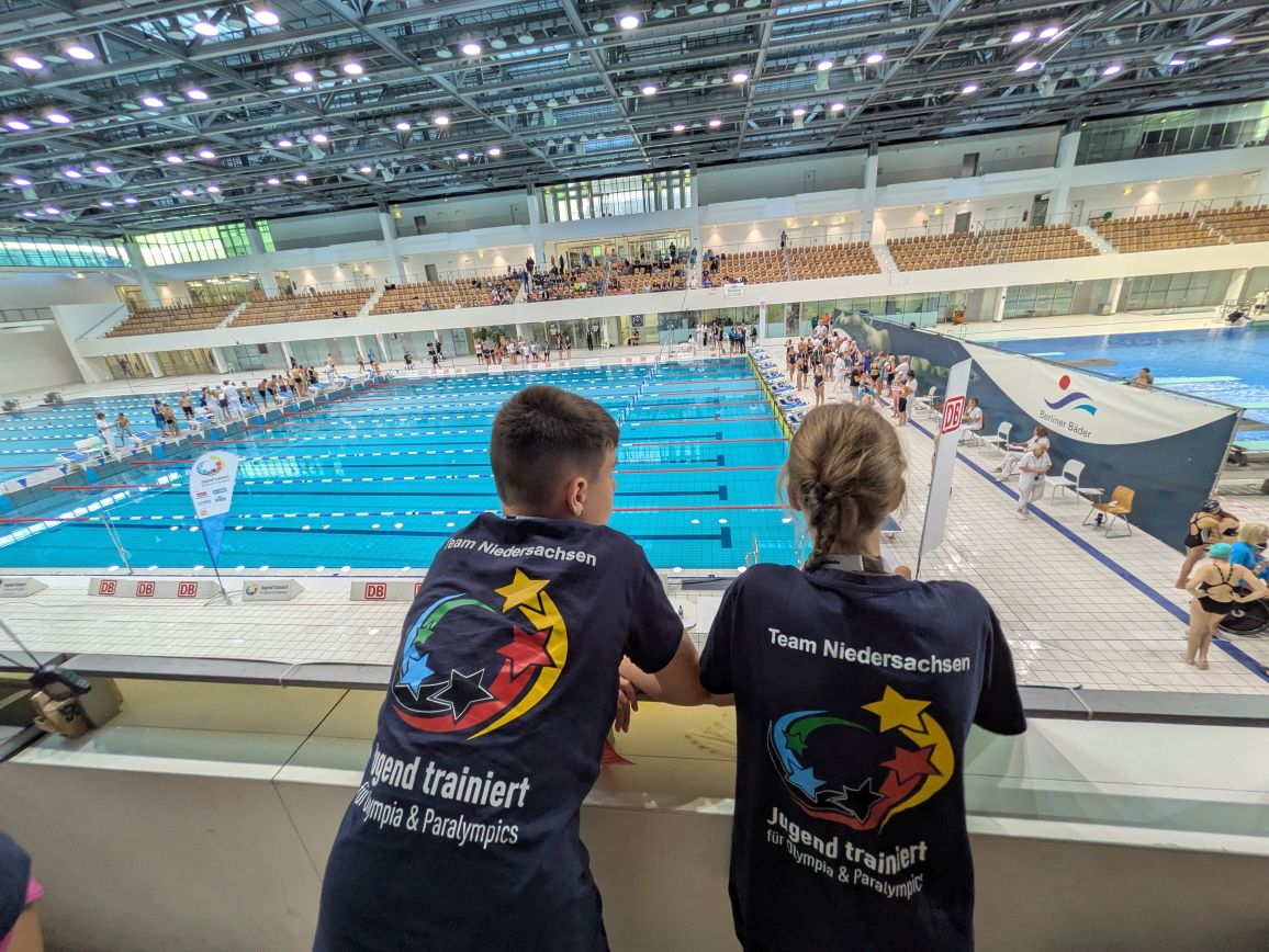 Die Anne-Frank-Schule Osnabrück nahm erfolgreich am Bundesfinale Jugend trainiert für Olympia und Paralympics Schwimmen in Berlin 2025 teil und vertrat das Land Niedersachsen mit großem Einsatz. Trotz einer katastrophalen Anreise (Sonntag) mit der Deutschen Bahn während des Berlin-Marathons blieb die Stimmung im Team kämpferisch, aber auch herausfordernd. Im starken Teilnehmerfeld erzielten unsere Athletinnen und Athleten in der Paralympics-Wertung den hervorragenden 5. Platz. Die Woche war sehr anstrengend und aufregend: intensives Training und die Wettkämpfe fanden in der Schwimm- und Sprunghalle…