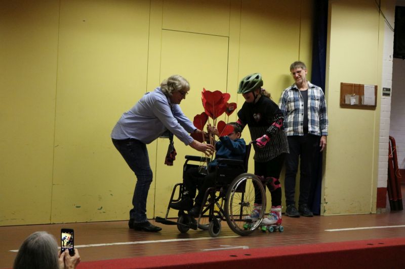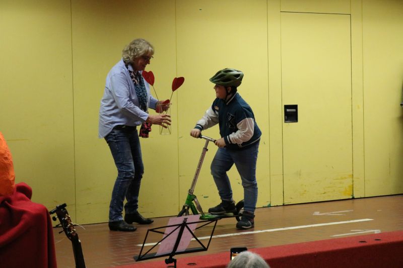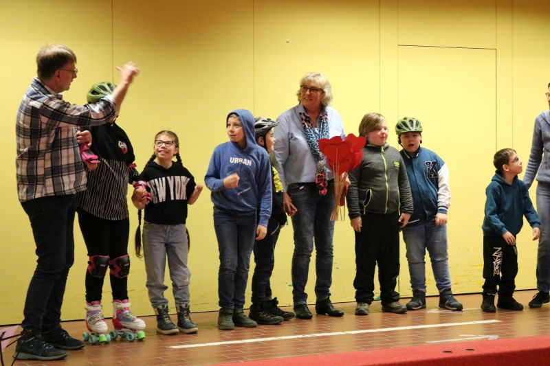 Am Freitag kamen alle Schülerinnen und Schüler auf dem roten Teppich zusammen und feierten ein weiteres buntes Schulgemeinschaftstreffen. Unsere langjährige Kollegin und Physiotherapeutin Ute Böschemeyer-Schmieding wurde vom Kollegium, aber vor allem von den Schülerinnen und Schülern verabschiedet. Außerdem berichtete unter anderem die Schülervertretung von ihren ersten Sitzungen, ein Jahrgang erzählte und zeigte Bilder von den Waldjugendspielen, der WPK Musik spielte ein Lied mit verschiedenen Instrumenten vor, ein neues kleines Kettcar wurde gezeigt und es wurde vom Tischtennisturnier in Göttingen berichtet.