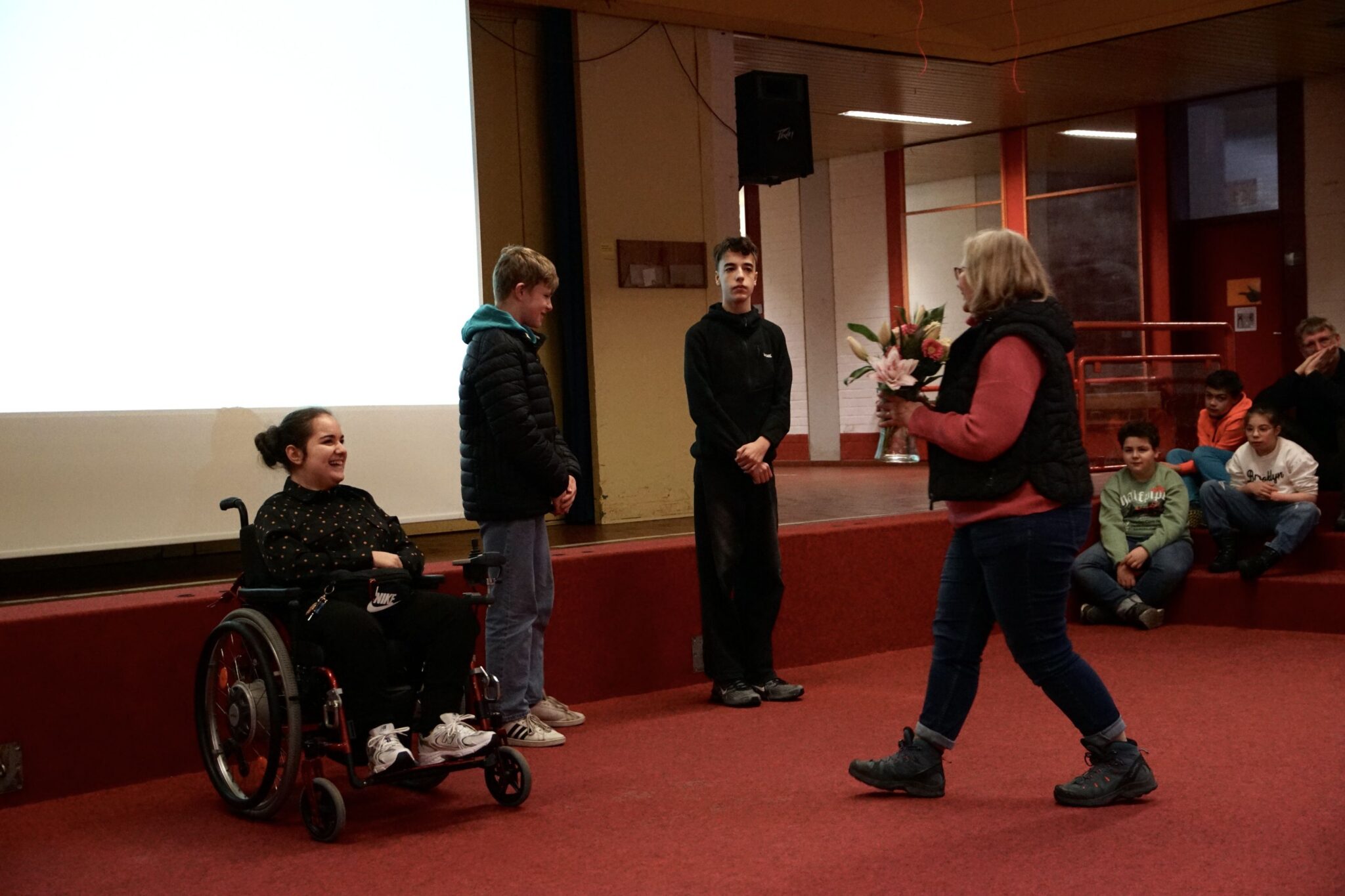 Ende Januar haben wir ein Schulgemeinschaftstreffen (SGT) gefeiert und darin unsere langjährige Kollegin Hedwig Behrens und drei Schüler verabschiedet. Die Schüler werden ab dem 2. Halbjahr ein andere Schule besuchen. Hedwig Behrens verabschieden wir in den wohlverdienten Ruhestand.