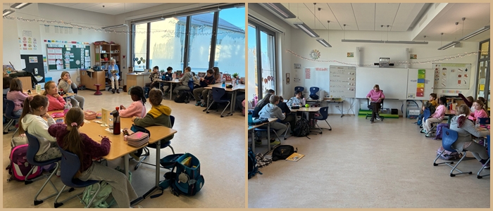 Frau Dargatz brachte ihr Buch „Mo und die Krümel auf Klassenfahrt“ mit und begeisterte die Schülerinnen und Schüler mit den lebendigen und witzigen Erlebnissen der Figuren. Die Kinder hörten aufmerksam zu und mussten immer wieder schmunzeln.