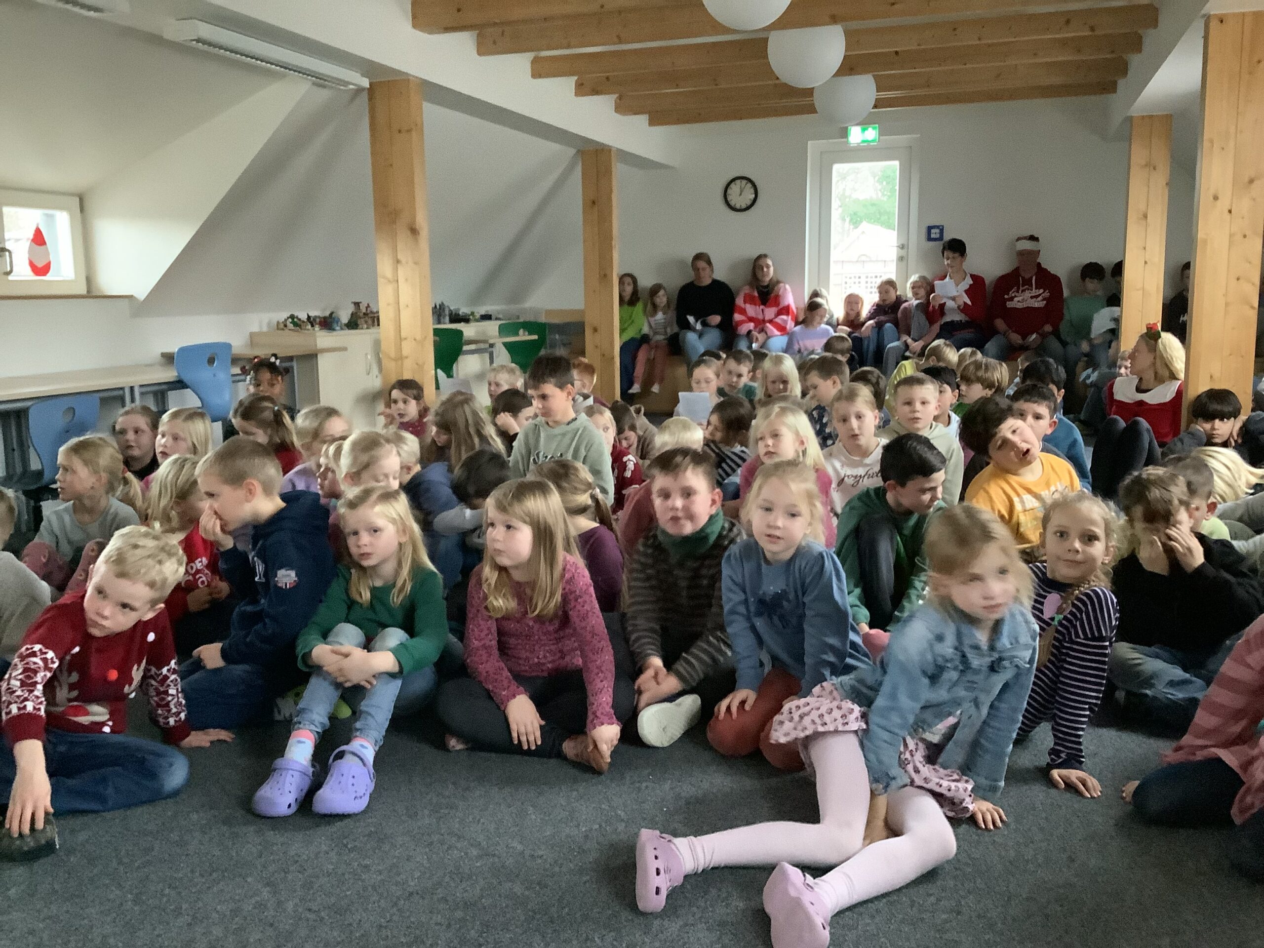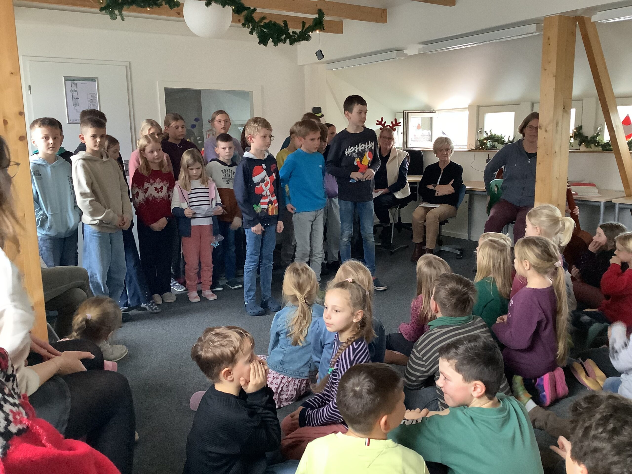 Heute haben wir mit allen Schülerinnen und Schülern eine schöne Weihnachtsfeier veranstaltet. Jede Klasse hat etwas vorgetragen, es wurden Geschichten erzählt und Lieder gesungen.