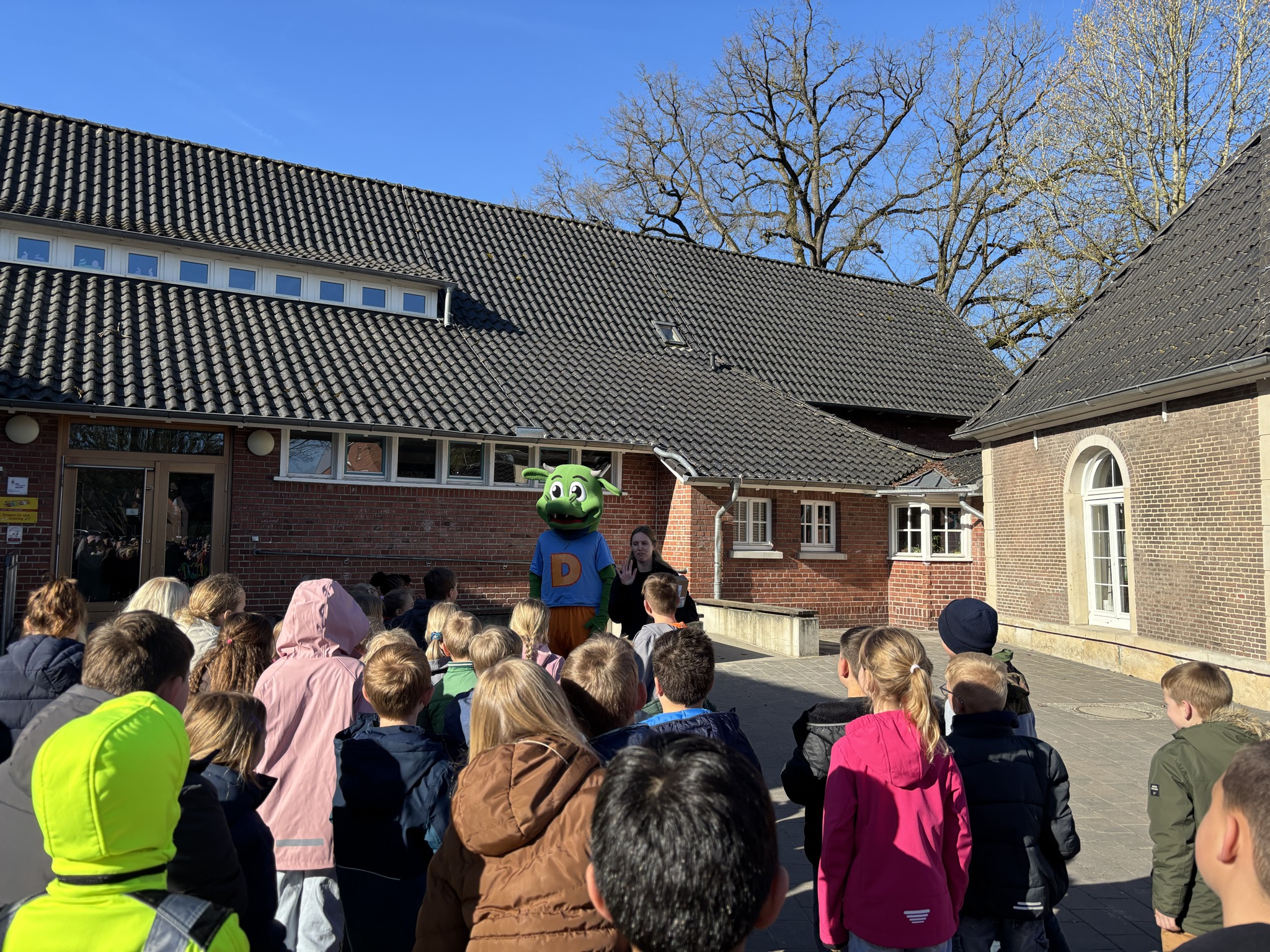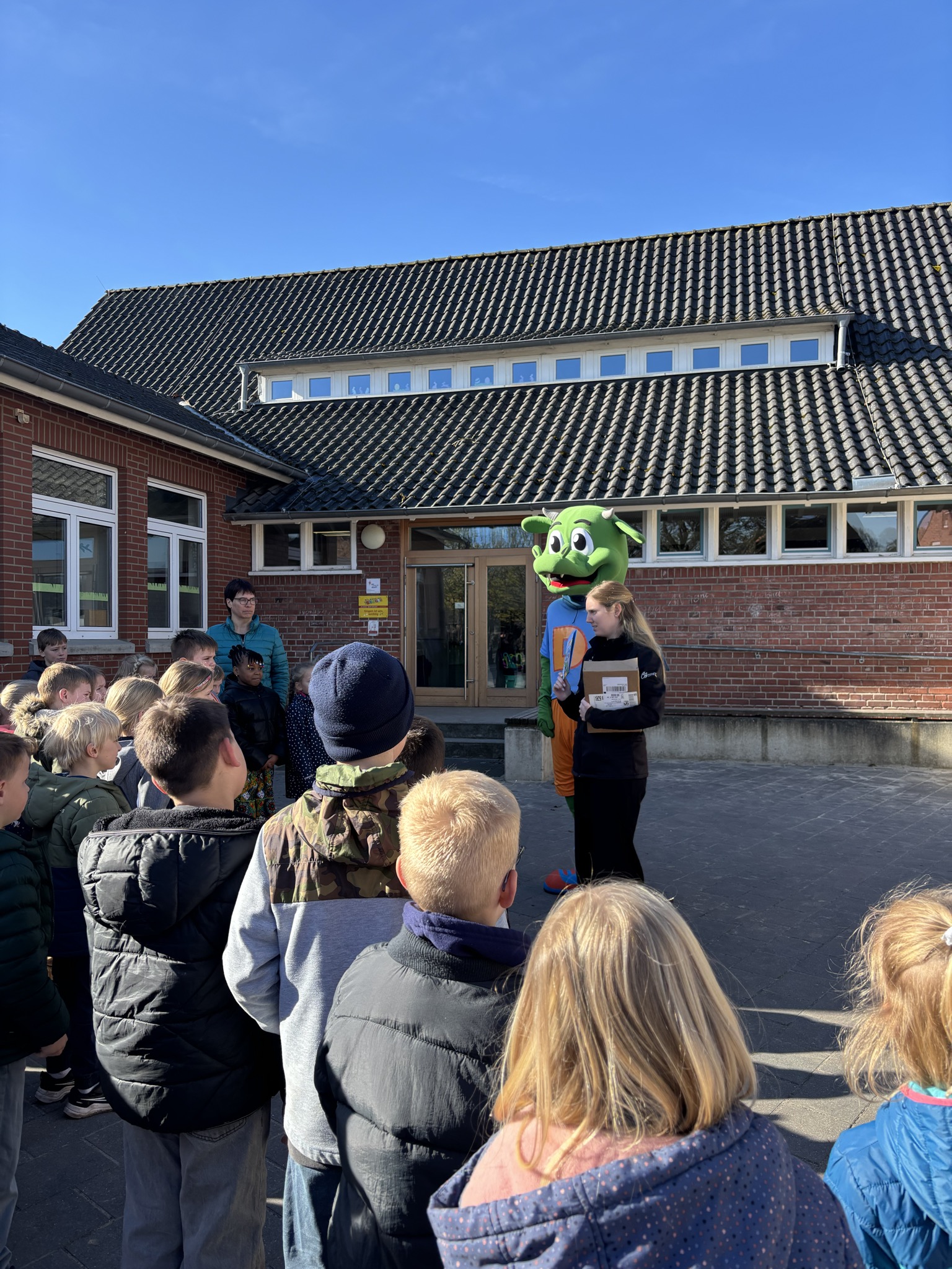Er hat der 1. und 2.Klasse den Drago’s Bewegungs-Pass übergeben.