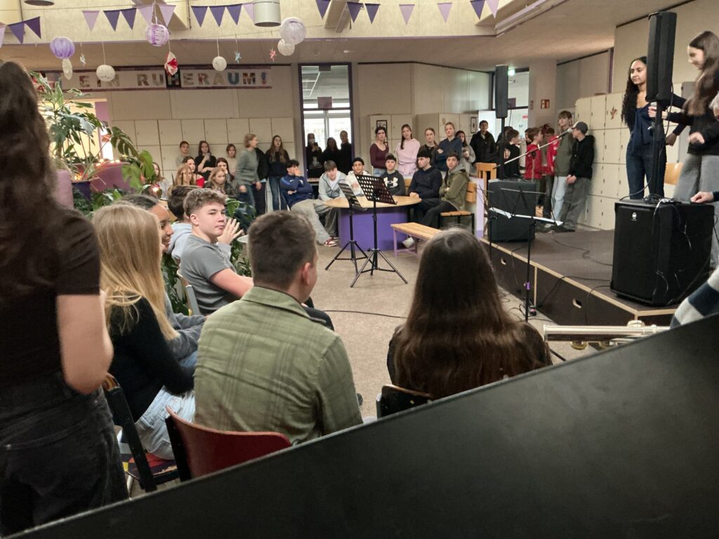 Am letzten Schultag vor den Weihnachtsferien gestalten viele Jahrgänge eine weihnachtliche Feier – der Lila Jahrgang auch.