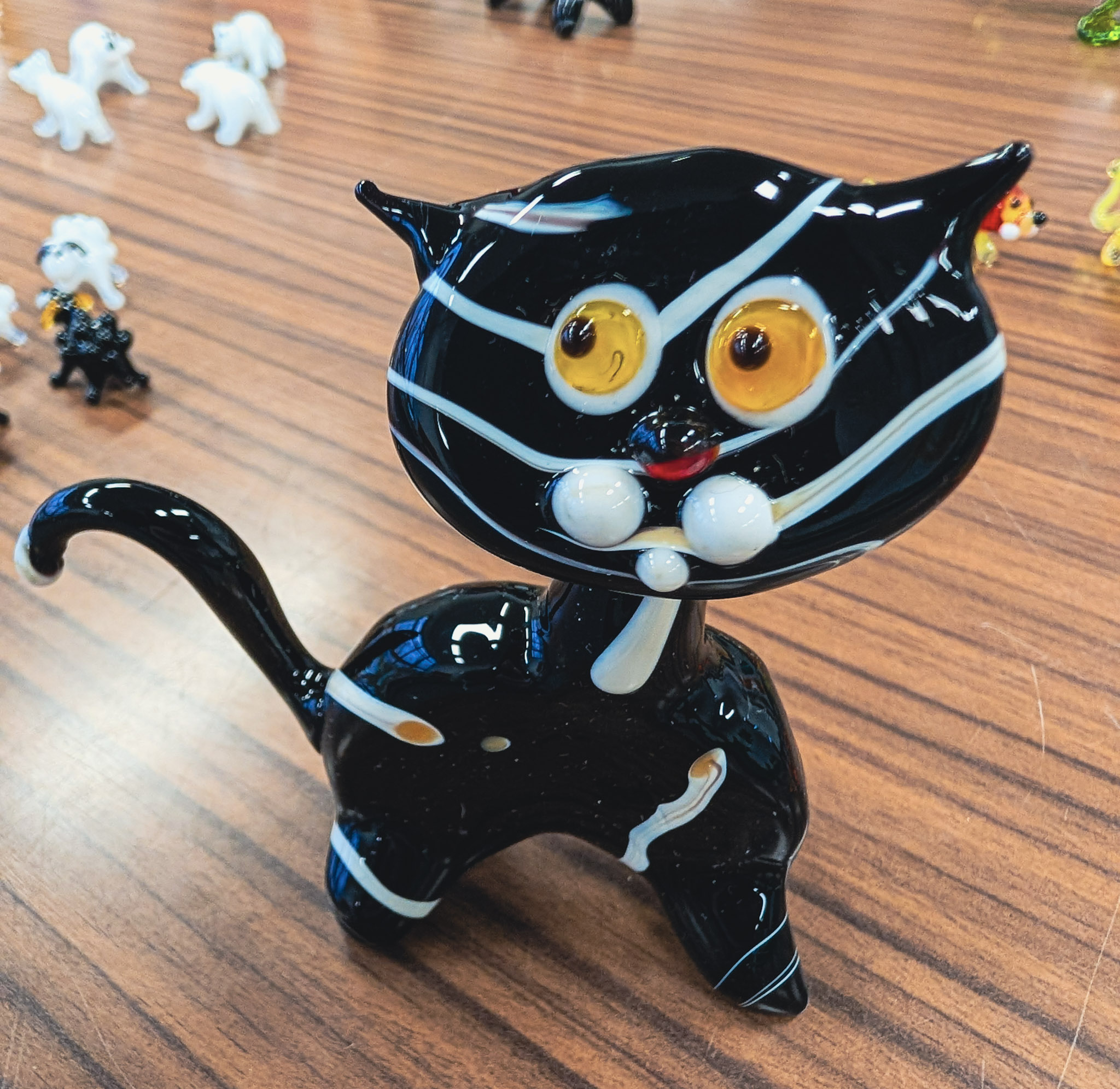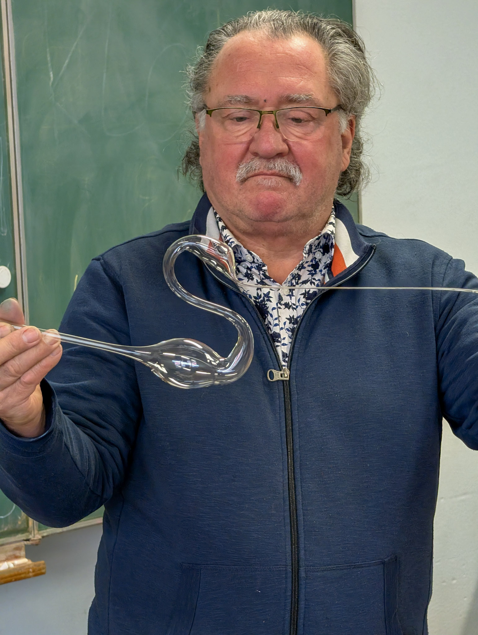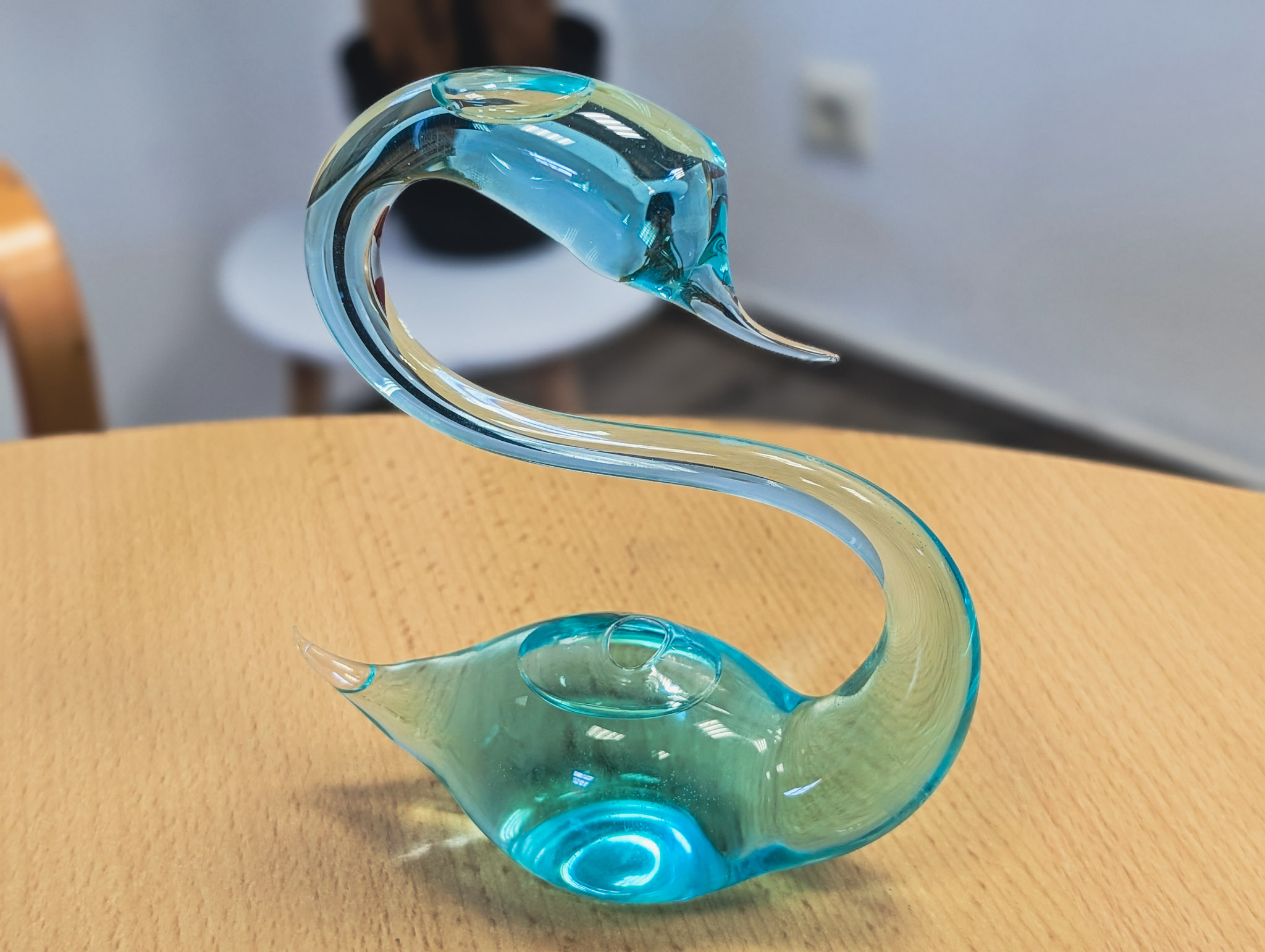 Im Laufe der Vorführung entstanden u.a. eine Blumenvase, eine Christbaumspitze und ein Schwan aus Glas. Der Schwan bleibt als Erinnerung an diesen besonderen Unterrichtsbesuch an unserer Schule.