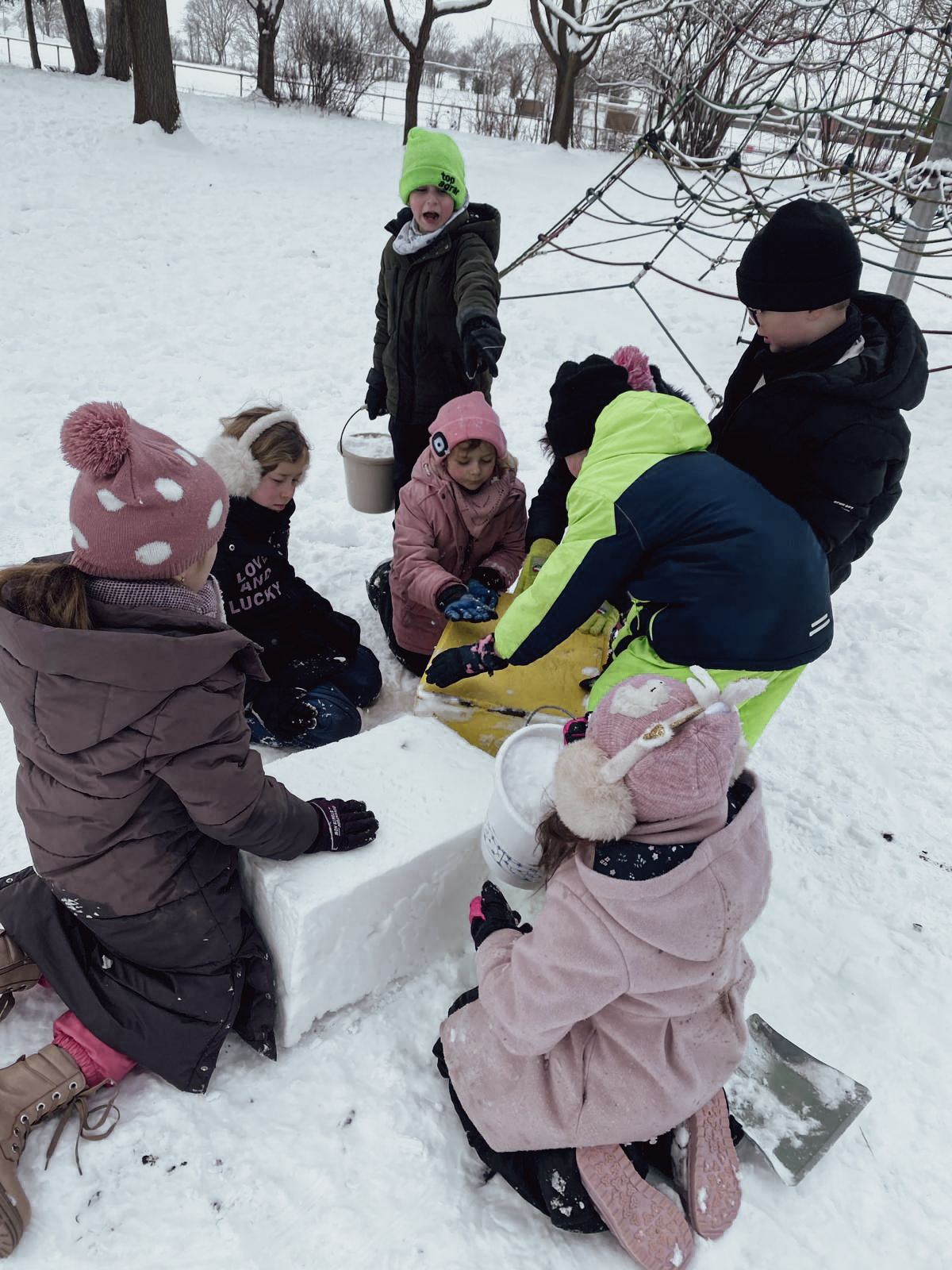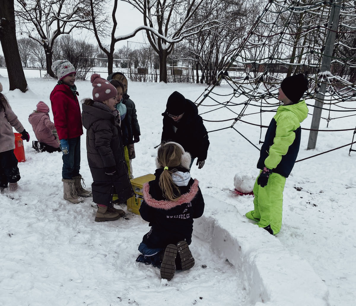 In den letzten Wochen wurde unsere Schule von einer weißen Schneedecke überzogen. Zur großen Freude der Kinder natürlich, die ihre Pausen und auch die Betreuungszeiten besonders gerne draußen auf dem Schulhof verbringen. „Poporutscher“ sind heiß begehrte Artikel und verschwinden aus irgendwelchen Gründen regelmäßig in dem ein oder anderen privaten Spind.