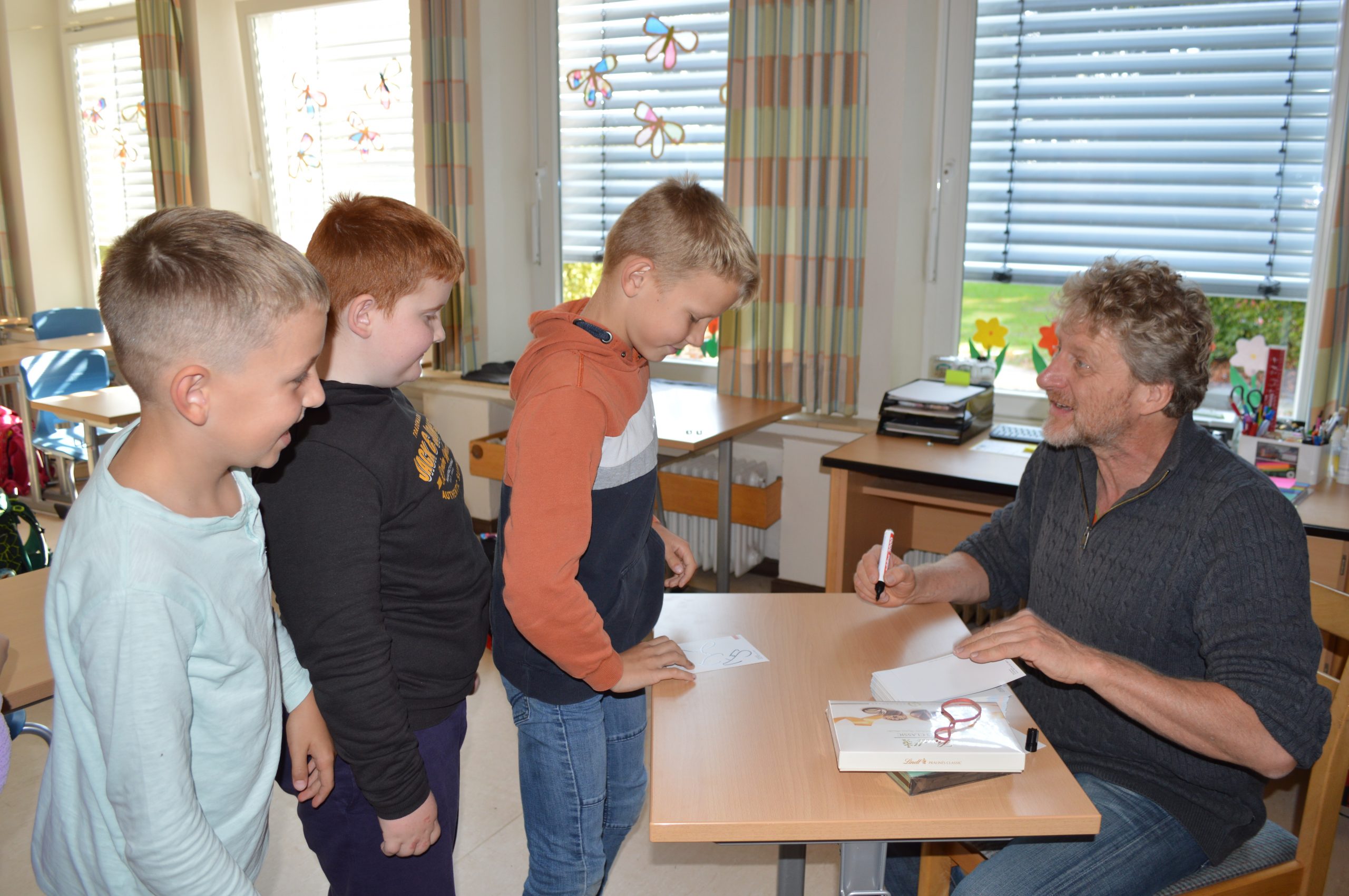 Ein herzliches Dankeschön geht an den Friedrich-Bödecker-Kreis e. V., der einen Großteil der Kosten übernahm. Ohne diese Zuschüsse, wäre eine Autorenlesung an kleinen Schulen nur schwer umsetzbar. Für die Kinder war es ein tolles Erlebnis, mal einen Buchautor und seine Arbeit persönlich kennenzulernen. Viele Kinder wollten wissen, wie die Geschichten weitergehen. Die Bücher wurden mit Unterstützung des Fördervereins der Schule für die Schülerbücherei angeschafft und somit haben die Kinder die Gelegenheit, diese Bücher in der nächsten Zeit auszuleihen. Was für ein schönes Mittel, um Kinder zum Lesen zu animieren!