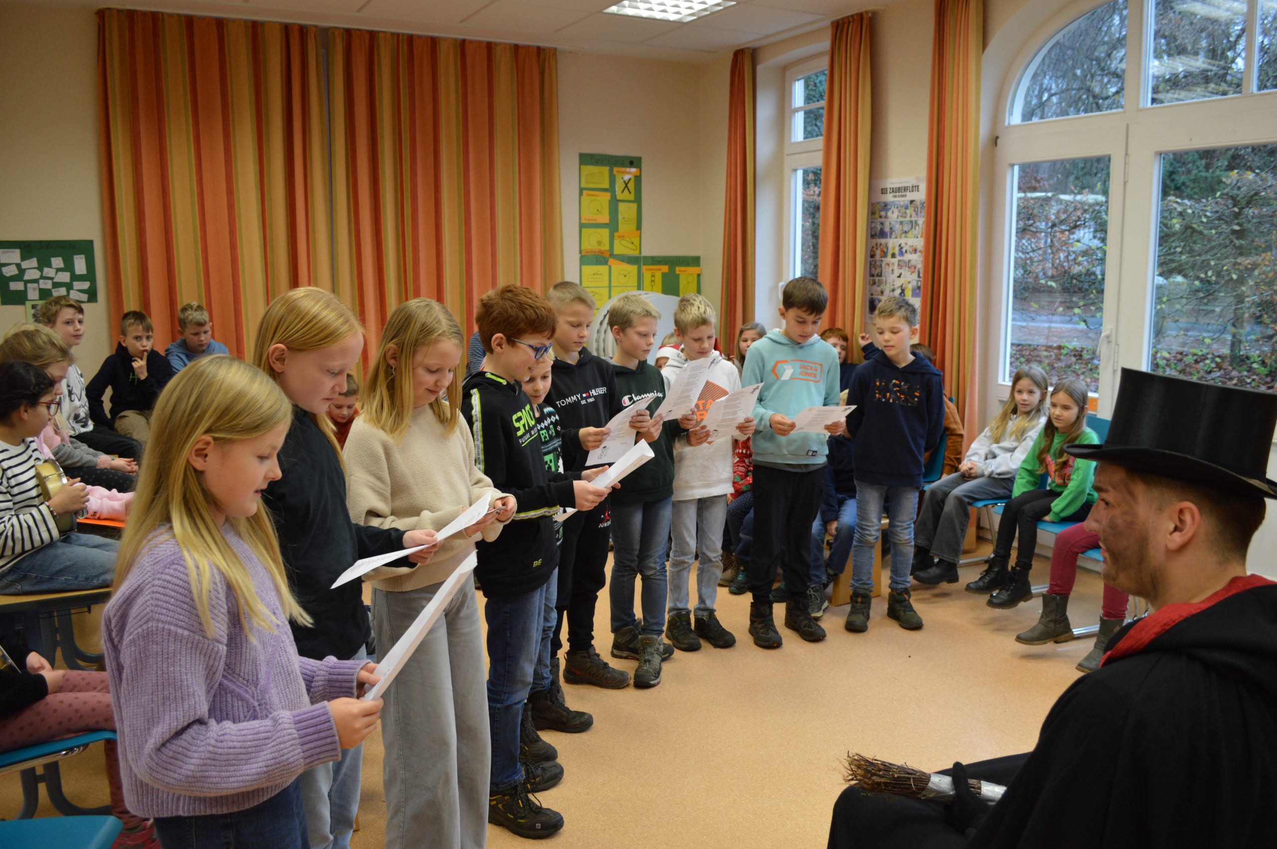 In den Jahrgängen 3 und 4 trug Herr Isermeyer aus dem Buch „Die Brüllbande“ vor. Auch hier fesselte er die Kinder mit seinem Vortrag.