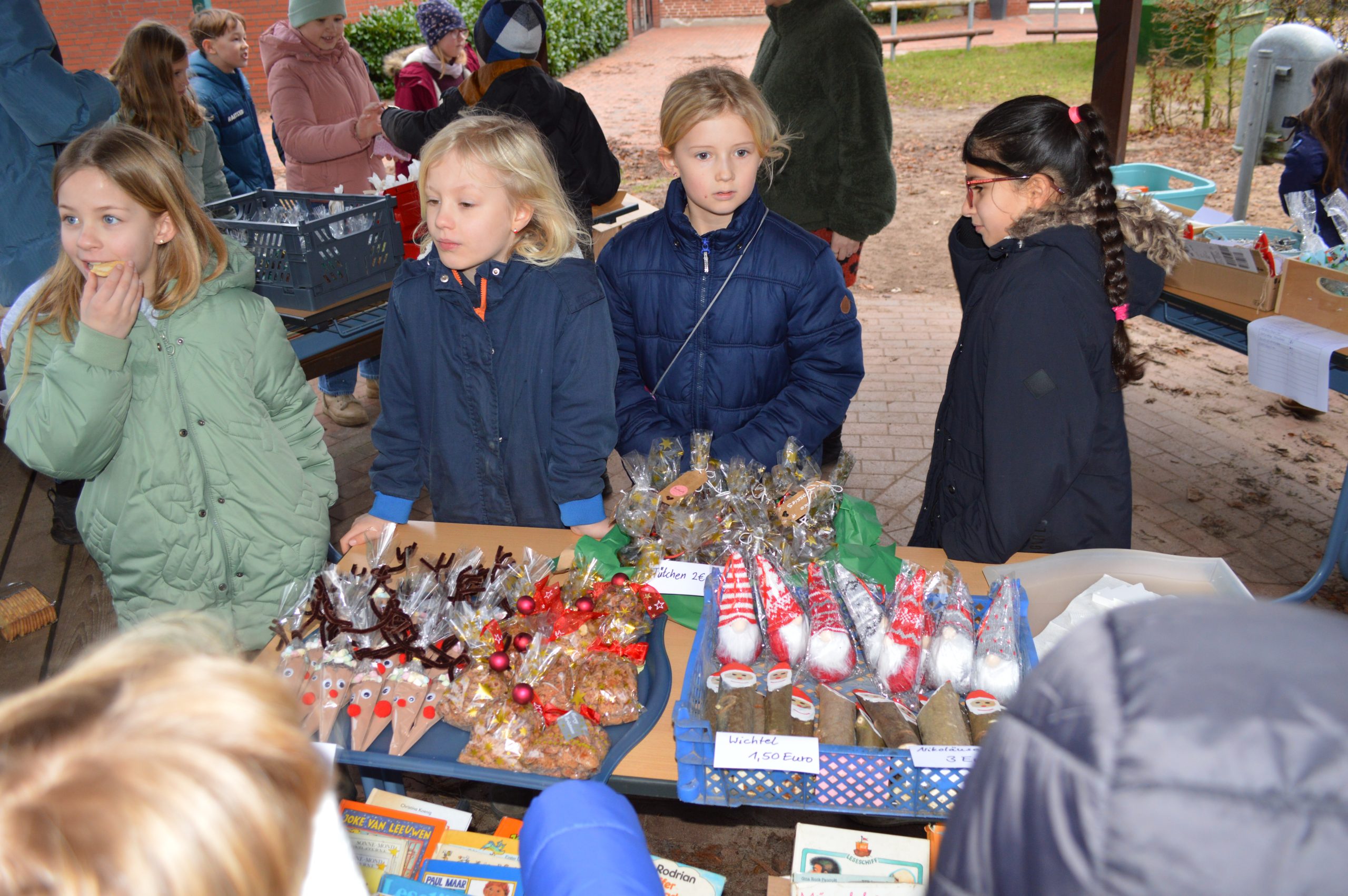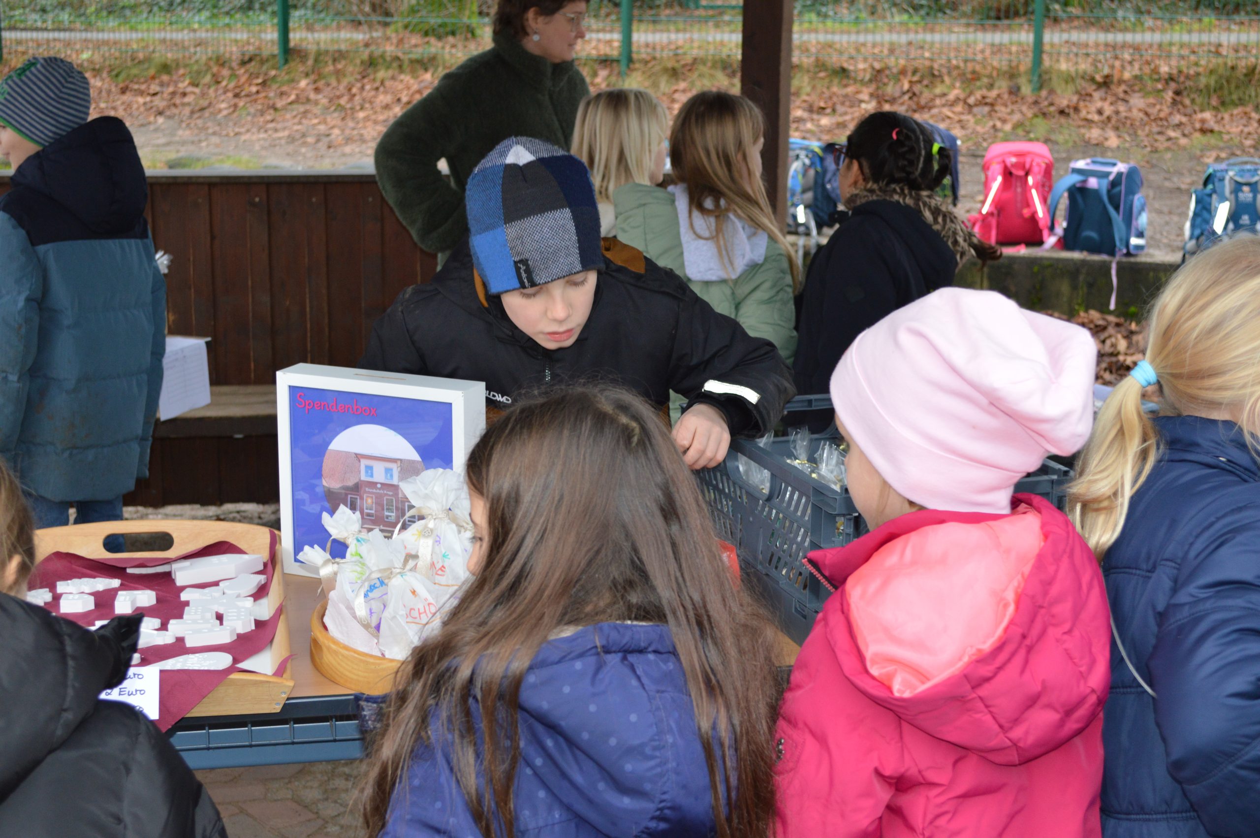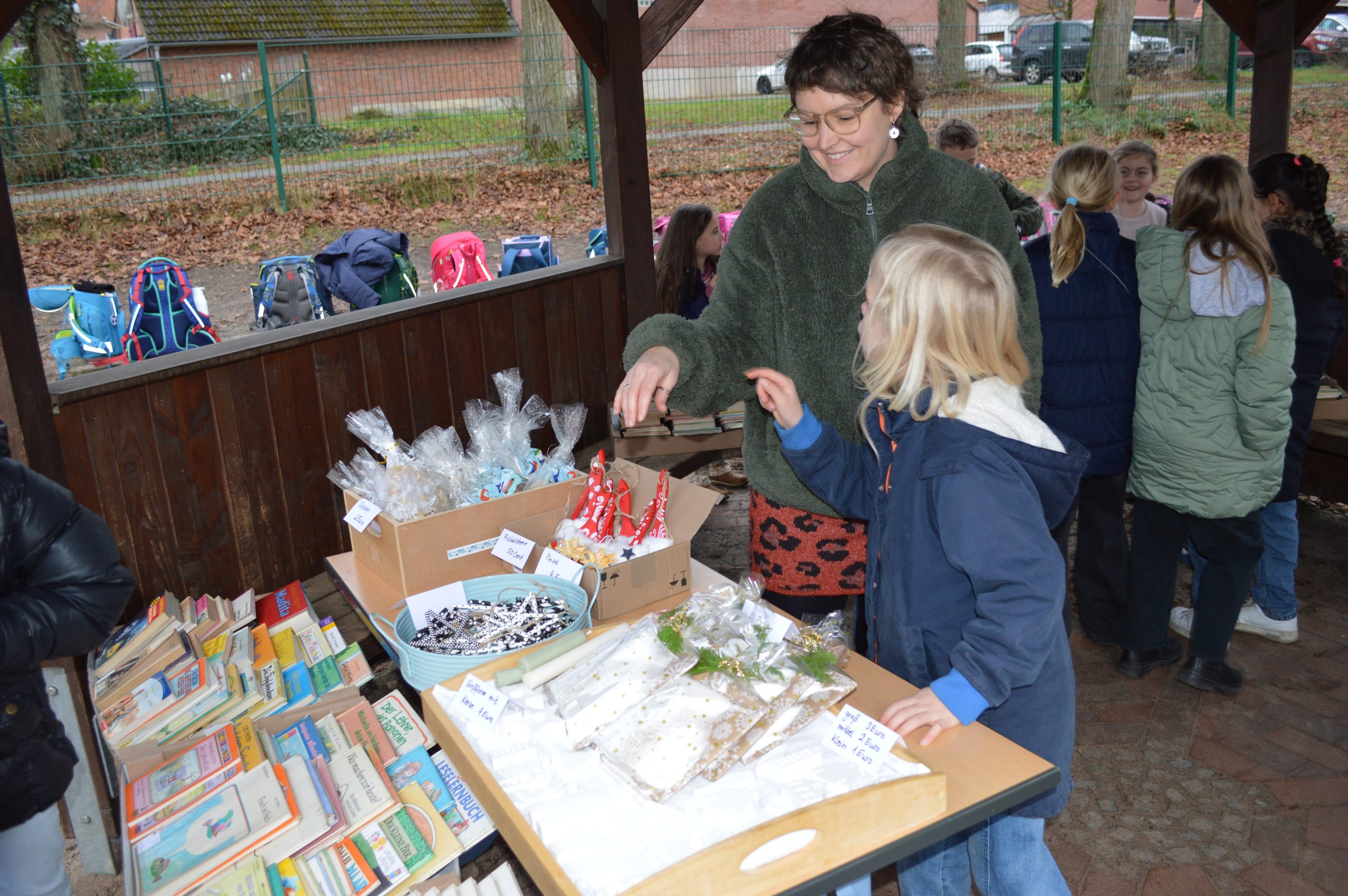 Am Dienstag vor Weihnachten veranstaltete der Schülerrat einen Adventsbasar. Viele Eltern und Kinder haben fleißig gebastelt und gebacken. Dieses wurde dann auf dem Schulhof auch für die Öffentlichkeit verkauft. Es ist ein Erlös von insgesamt 427,14 EUR eingenommen worden. Dafür allen Helfern ein herzliches Dankeschön! Es war eine tolle Aktion!