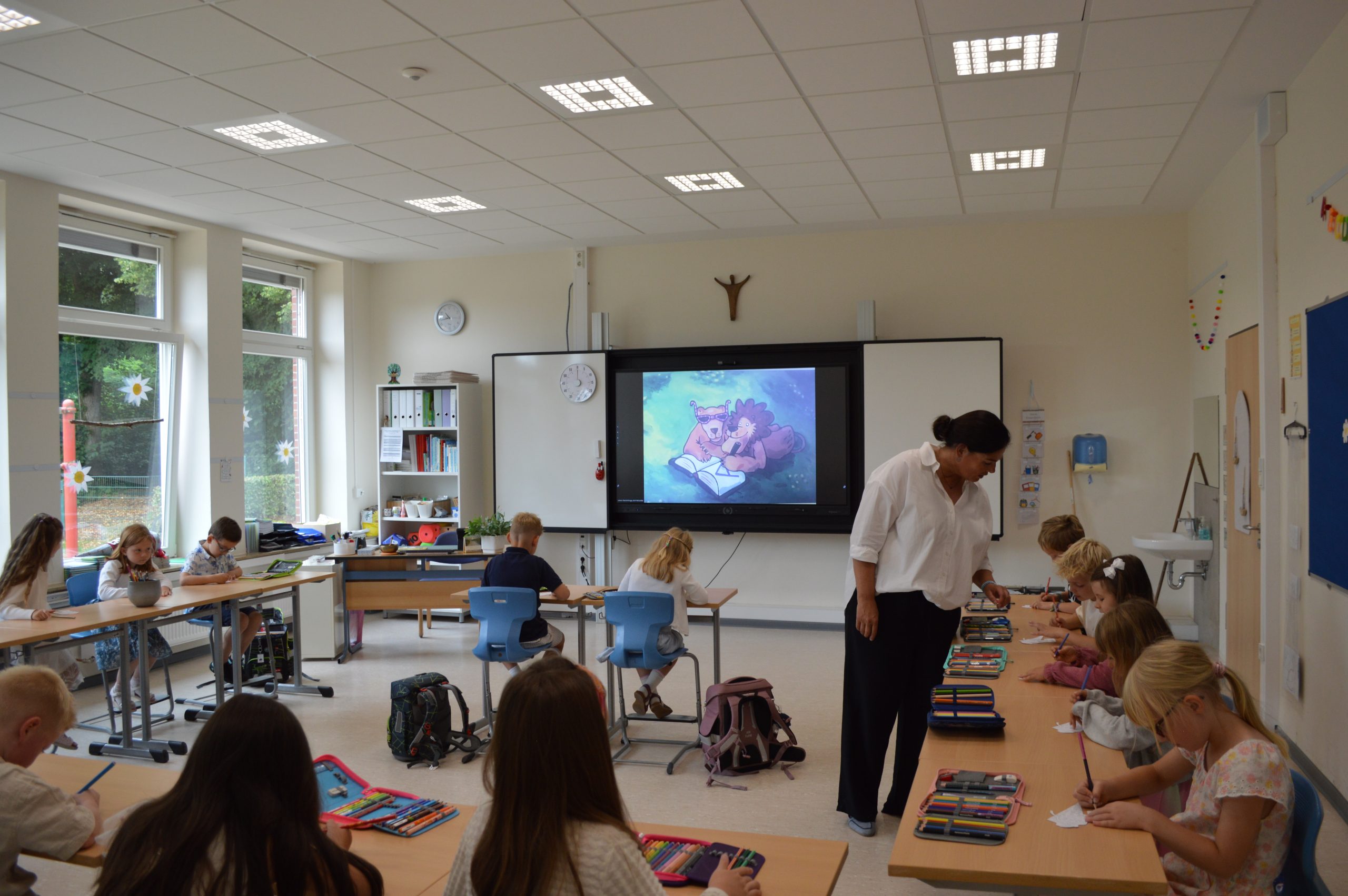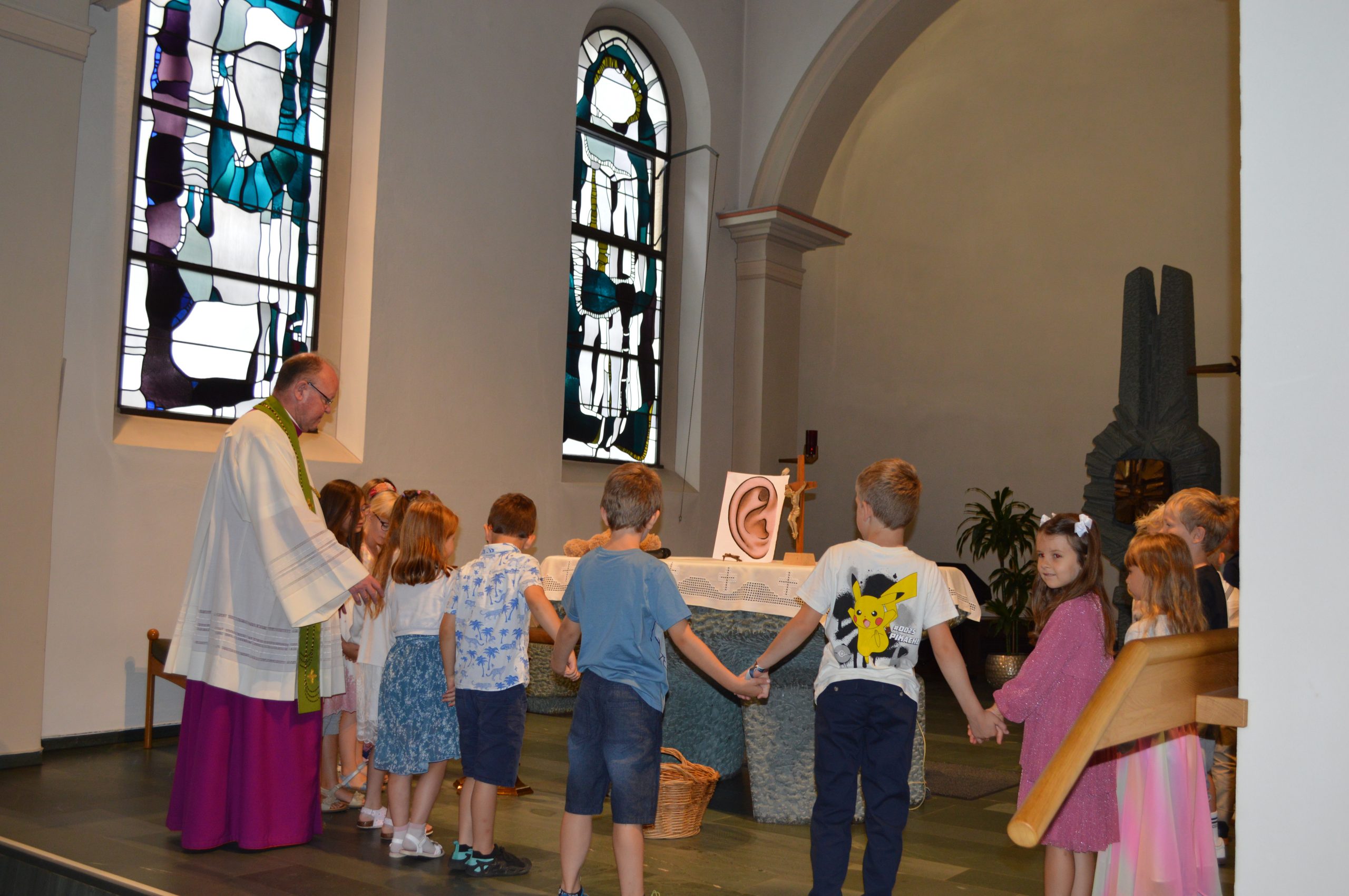Am 16.08.2025 durften 17 Schülerinnen und Schüler an der Grundschule Kroge ihre Einschulung feiern. Zunächst fand ein Wortgottesdienst in der Herz Jesu Kirche Kroge statt, anschließend ging es für die 1. Klässler in ihre erste Unterrichtstunde.
