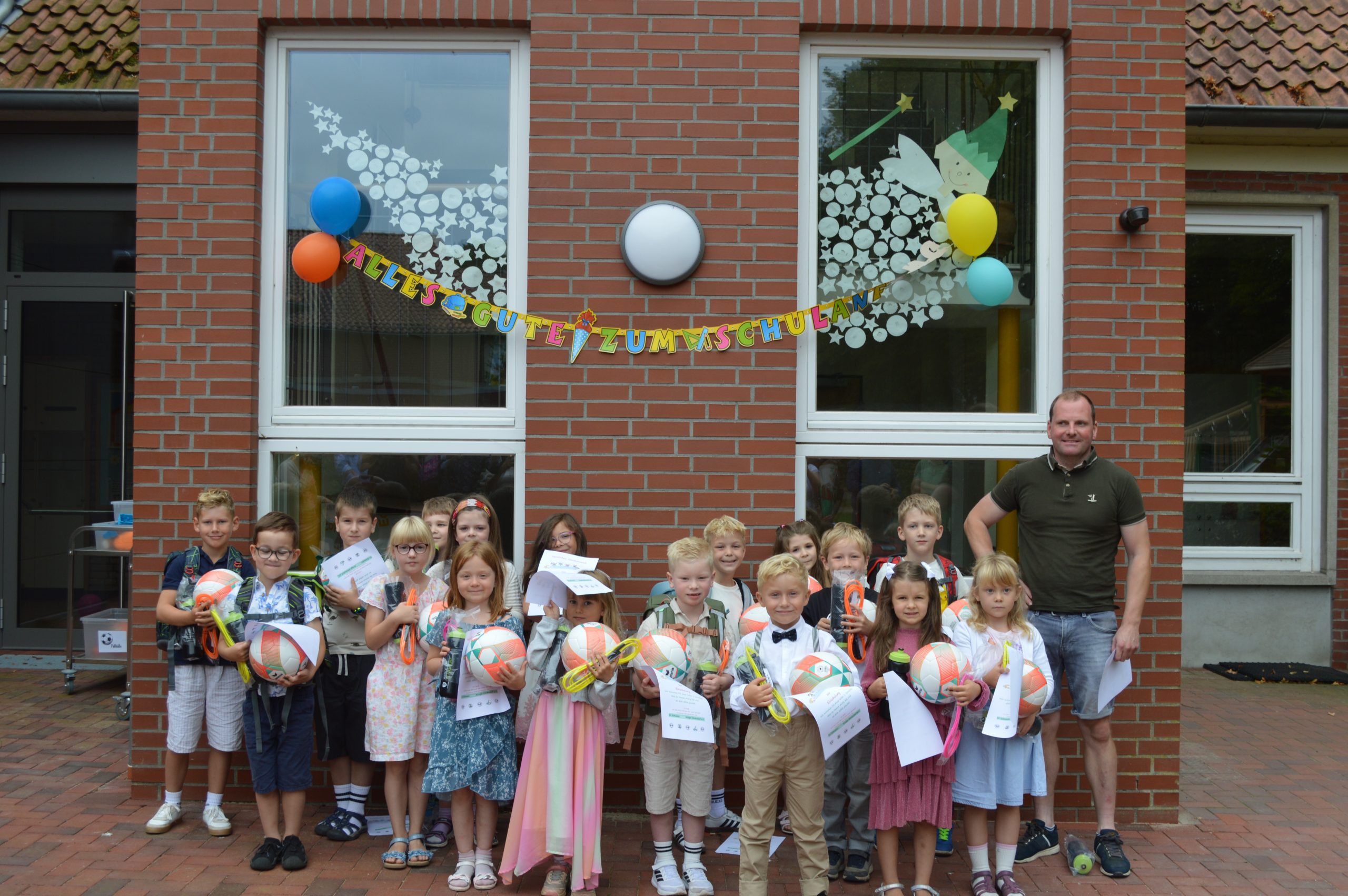 Zum Abschluss der Einschulung gab es vom Sportvereins SV SW Kroge Ehrendorf ein Präsent überreicht.