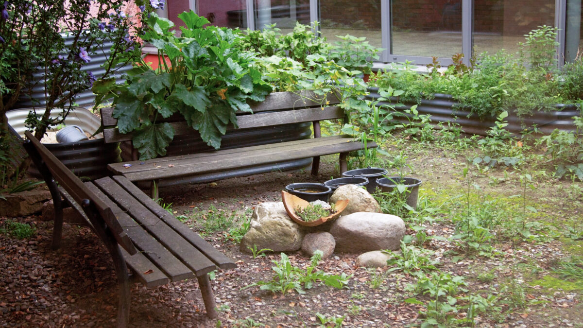 Zusätzlich hat unsere Schule noch zwei Innenhöfe, unser „kleiner“ und unser „großer“ Garten, die sich gerade in der Umgestaltung befinden. Hier entsteht ein Schulgarten, in dem eu.a. eigenes Gemüse angebaut werden kann. Diese Innenhöfe stehen unseren Schülerinnen und Schülern auch im Rahmen der Ganztagsangebote zur Verfügung.