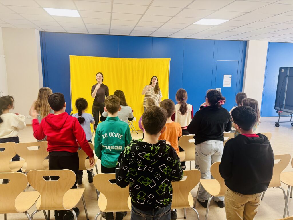 Auch dieses Schuljahr wurden die vierten Klassen von der theaterpädagogischen Werkstatt Osnabrück besucht. In dem interaktiven Theaterstück „Mein Körper gehört mir“ werden zentrale Themen, wie Selbstbestimmung, Körperbewusstsein und ein respektvoller Umgang miteinander kindgerecht aufgearbeitet. Durch spielerische Szenen, Dialoge und Mitmach-Elemente erhalten die Kinder die Möglichkeit, eigene Grenzen zu erkennen, zu benennen und zu verteidigen.