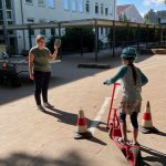 Der Rollerparcours für die Kinder der Eingangsstufen war wieder ein voller Erfolg. Viele Klassen trainierten einige Tage vorher den Parcours, sodass die Kinder sicher und selbstbewusst die verschiedenen Stationen wie beispielsweise die Acht, das Spurbrett „Die Brücke“ sowie den Kreis „Die Waschstraße“ meistern konnten. Weiterhin wurde auf das richtige Tragen des Helmes großen Wert gelegt und mit den Kindern genau besprochen. Bei erfolgreichem Bestehen des Rollerparcours erhalten die Kinder einen Rollerführerschein.