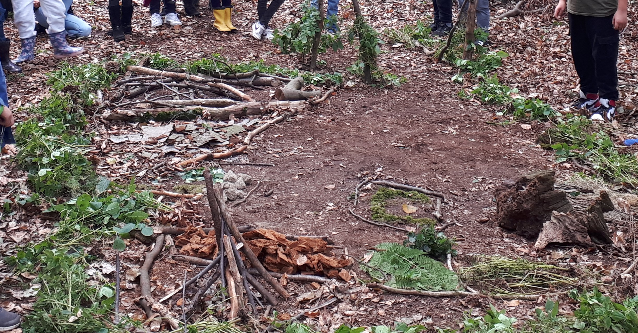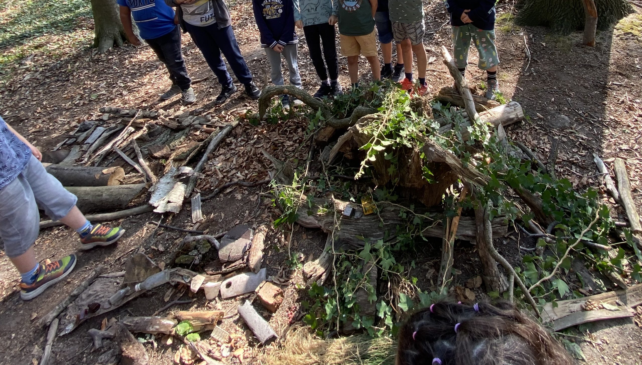 Anfang September verwandelte der Künstler Frank Nordiek mit den Klassen 4b und 4c ein kleines Stück Landschaft an vier Schultagen bei Sonne, Wind und Wetter zu einem „wilden“ Klassenzimmer. „Land Art“, Kunst in und mit der Natur und mit ihren Materialien war das Thema des dort stattfindenden ungewöhnlichen Unterrichts.