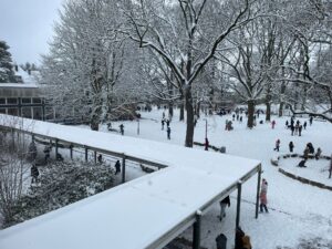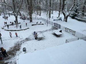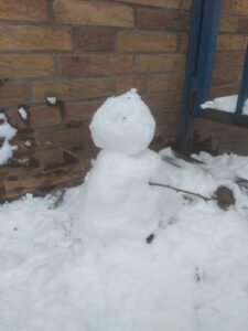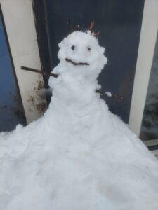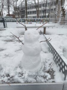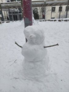 Im heutigen weißen Winterwunderland auf unserem Schulhof waren die Kinder zum Schneemännchen bauen aufgerufen worden. Viele ließen ihrer Kreativität freien Lauf: