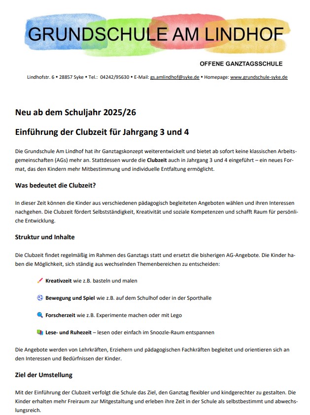 Ganztag – Neuerung ab Schuljahr 25/26 für Jahrgang 3 und 4