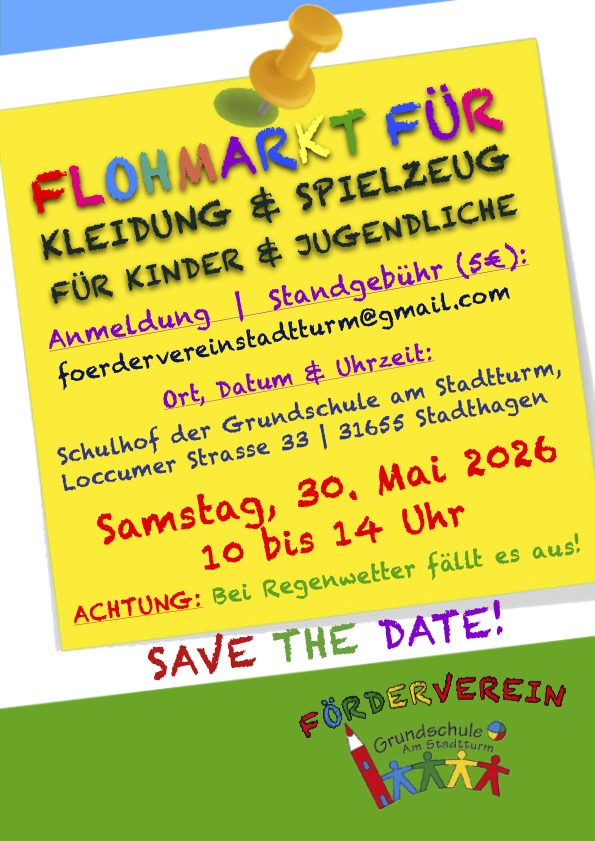 Von 10 – 14 Uhr findet auf unserem Schulhof wieder ein Flohmarkt statt. Der Förderverein hat alles organisiert und freut sich auch noch über Kuchenspenden. Bitte über die Klassenlehrer:innen beim Förderverein melden.