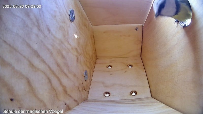 Am 27.2.26 besuchte uns wieder eine kleine Meise und schaute neugierig in unseren Nistkasten.