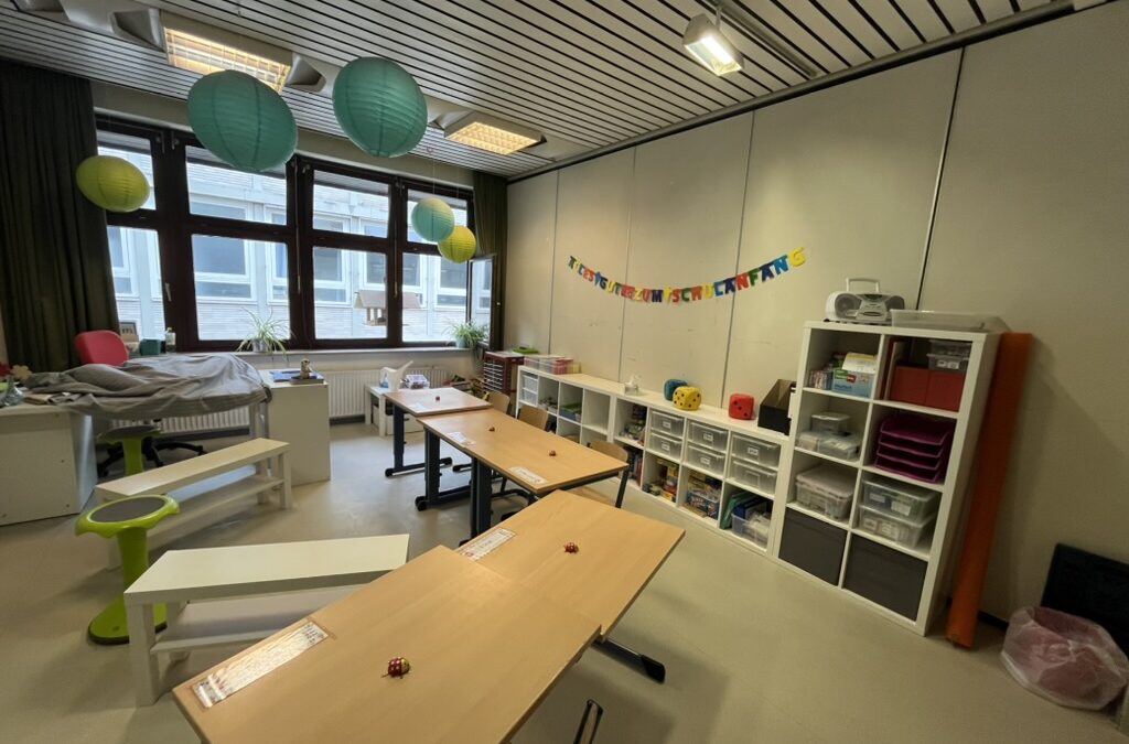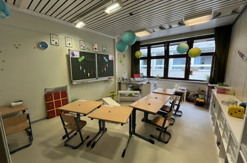 Anschließend ging es für die neuen Erstklässler gemeinsam mit der jeweiligen Klassenlehrerin und allen Mitschüler*innen in den Klassenraum, um die erste Unterrichtsstunde zu erleben. In der Zwischenzeit konnten alle Besucher bei Kaffee und Waffeln eine schöne Zeit auf dem Schulhof verbringen.