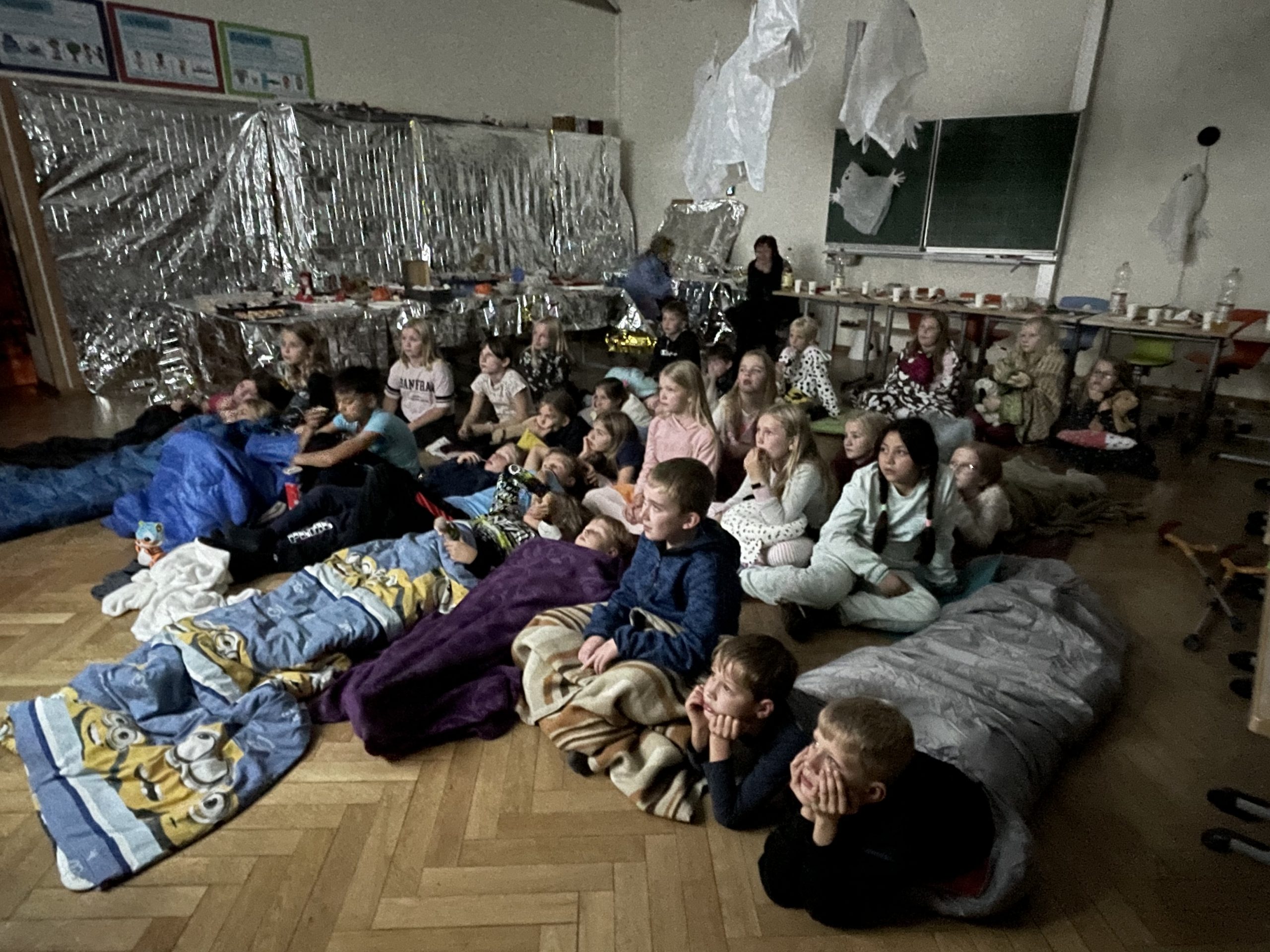 Nachdem sich alle an die Dunkelheit gewöhnt hatten, durften die besten Plätze in den Schlafräumen erobert werden. Mit besorgten Blicken verließen die Eltern das düstere Gebäude.