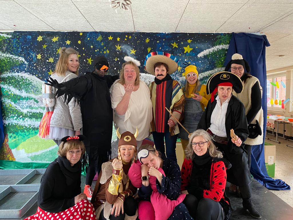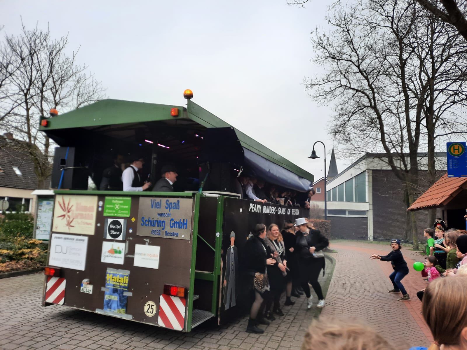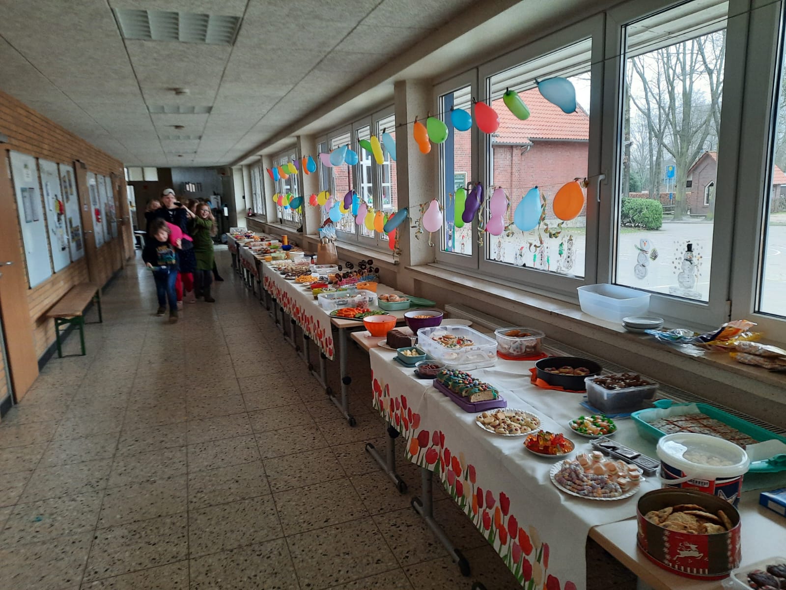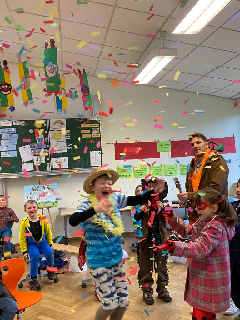 Buntes Treiben in den Klassen und auf dem Schulhof, ein langes und leckeres Buffet im Flur und eine tolle Talentshow in der Turnhalle. Bei der Pommesbuden Polonäse und anderen Bewegungsliedern schunkelten alle auf und nieder. Selbst ein Huhn mit Sonnenbrand war mit von der Partie und wurde von den Kindern lautstark musikalsich begleitet. Der Karnevalswagen der Kolping Jugend Beesten schaute mit lauter Musik und einer Tanzeinlage an der Grundschule vorbei. Zur Freude der Kinder wurden reichlich Gummibärchen geschmissen. So kam noch einmal richtig Karnevalsfeeling auf. Helau, Luftschlangen und Konfetti …..oh, wie war die Stimmung toll!