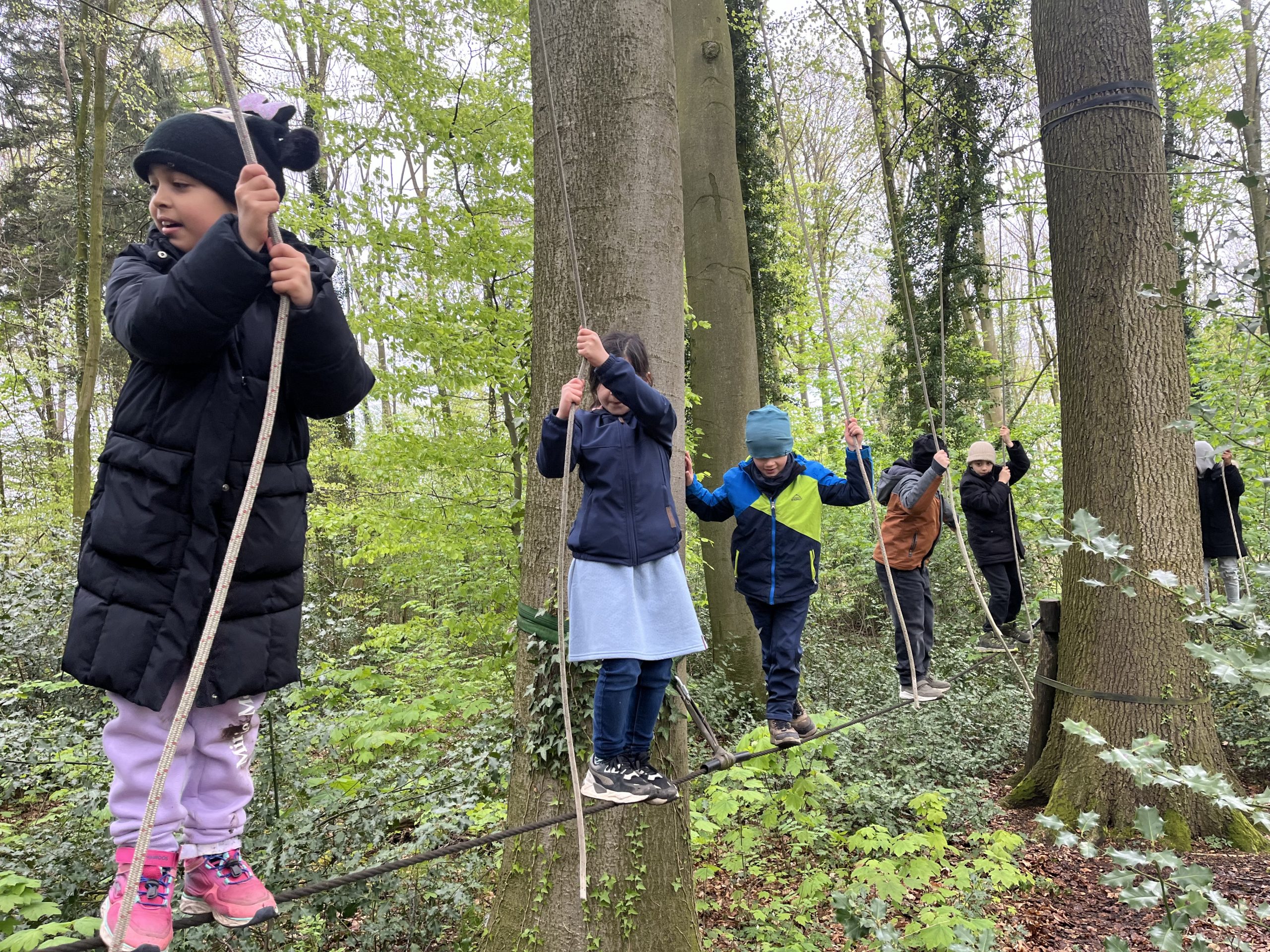 Am 17. April 2024 starteten die Klassen des Jahrgangs 2 der Grundschule Belm um 8.00 Uhr ihren geplanten Ausflug zum Niedrigseilgarten nach Kalkriese. Niedrige Temperaturen und ein wolkenverhangener Himmel konnten der Freude und Aufregung aller gar nichts anhaben.