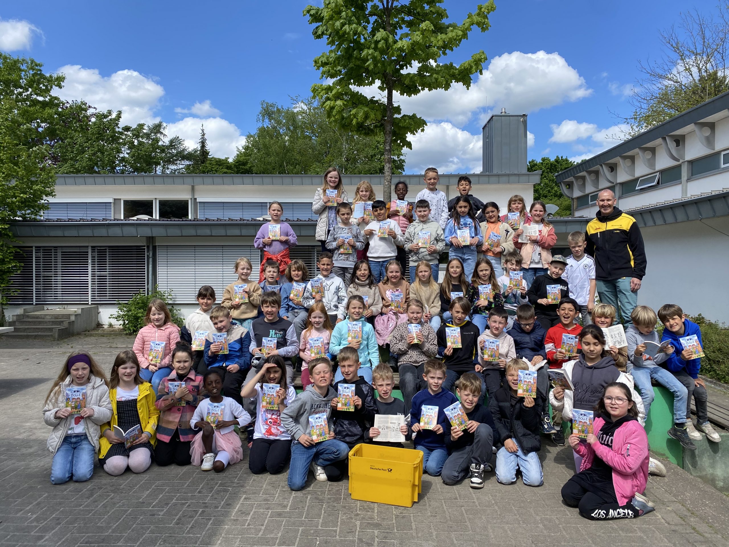 Auch in diesem Jahr gab es wieder Büchergeschenke zum Welttag des Buches! Nicht nur die ViertklässlerInnen durften sich über ein neues Buch freuen. Auch die Kinder der zweiten Klassen hatten Glück und wurden von der Deutschen Post durch die Organisation von Familie Medlitz mit einem Buch beschenkt. „Cool wie Bolle“ präsentieren die ZweitklässlerInnen den gleichnamigen Comicroman von Thomas Winkler und Timo Grubing. Schon beim ersten Schmökern wurde viel geschmunzelt.