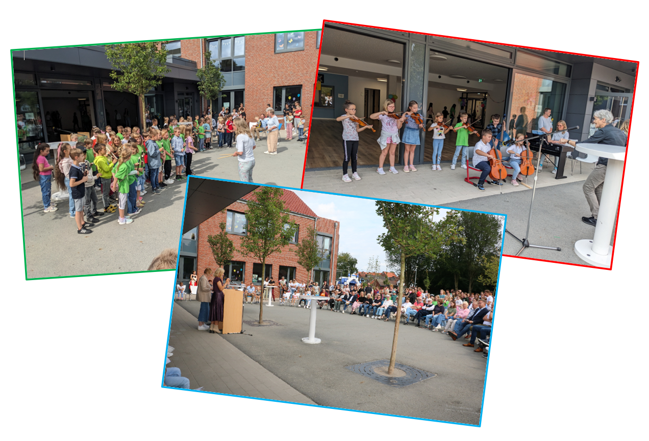 Am Freitag, den 30.08.2024, fand am Nachmittag das Schulfest der Bernhardschule statt, das viele Kinder mit ihren Eltern besuchten. Zu Beginn der Veranstaltung hieß die Schulleiterin Silvia Schmit alle Gäste herzlich willkommen. In ihrer Rede ließ sie die langjährigen Abriss-, Umbau- und Neubauarbeiten der Schule Revue passieren. Die geladenen Gäste gratulierten herzlich zu dem Abschluss der Bauarbeiten und zu dem gelungenen Endergebnis.