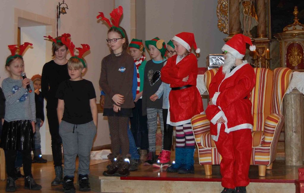 Nach dem Umbau des alten Schulgebäudes in Nikolausdorf konnte unsere traditionelle Nikolausfeier aus Platzmangel nicht mehr in der Schule stattfinden. Aber nach gemeinsamen Überlegungen mit dem Elternrat fanden wir eine gute Alternative: die Kirche in Nikolausdorf! Diese Räumlichkeit ließ es nun auch zu, die Eltern aller Schulkinder einzuladen. Von diesem Angebot machten erfreulicherweise viele Eltern und sogar einige Großeltern Gebrauch.