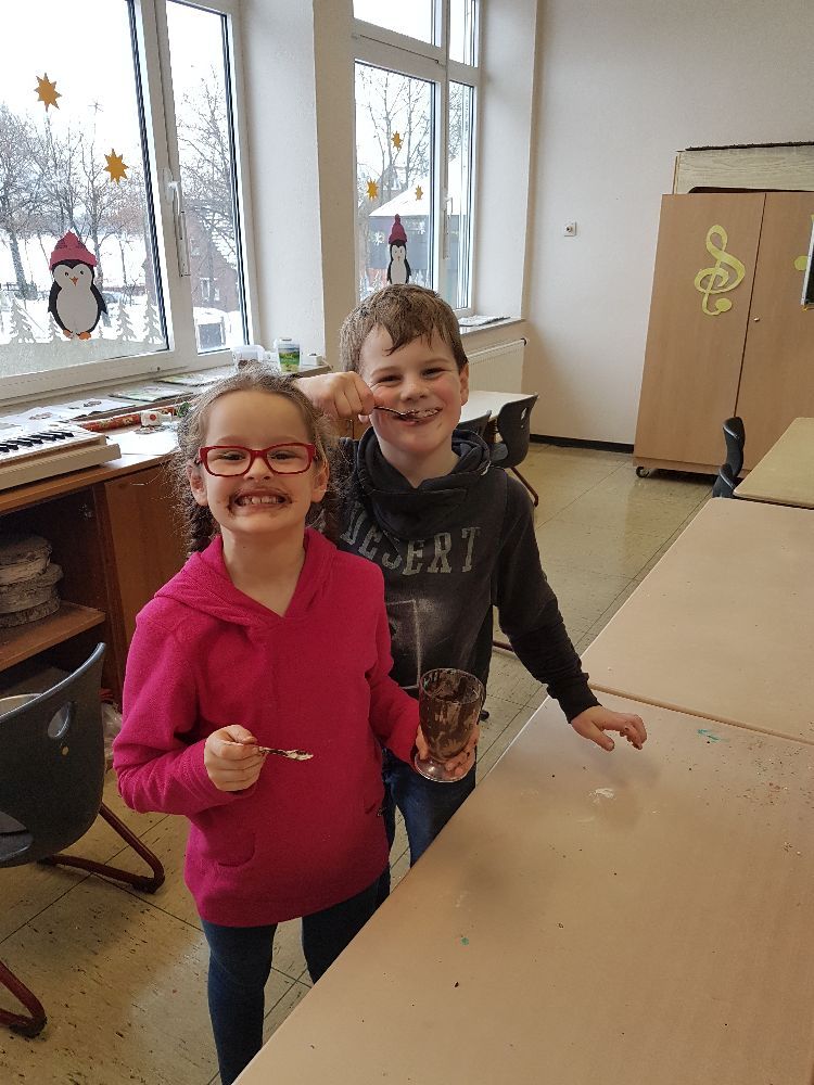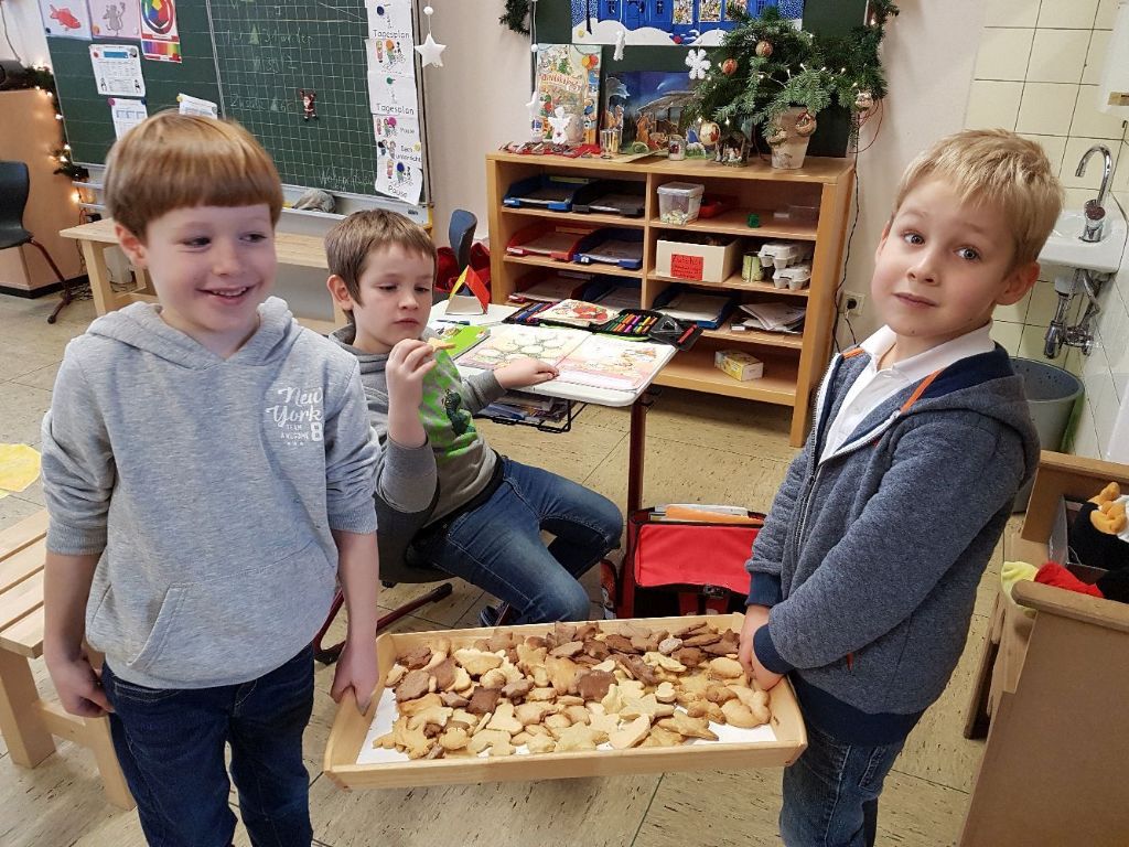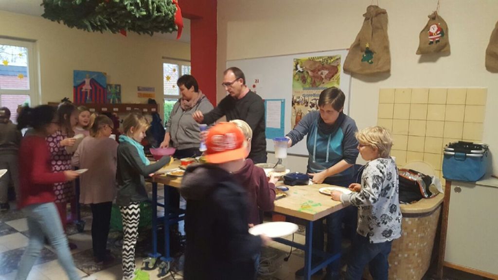 Wie in einer Weihnachtsbäckerei ging es an einem Vormittag auch in Klasse 1 und während der Betreuung in Klasse 2 zu. Am Nikolaustag überraschten uns an beiden Standorten fleißige Helfer mit leckeren warmen Waffeln und auf jedem Schülertisch stand eine leckere Überraschung, die der Förderverein organisiert hatte. Vielen Dank an alle Mütter und Väter, die sich an diesem Vormittag Zeit genommen haben!