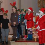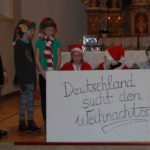 Für den ersten Teil unserer gemeinsamen Adventsfeier hatten alle Klassen etwas eingeübt: Weihnachtsgedichte, Weihnachtslieder, kleine Sketche und ein Kerzentanz standen auf dem Programm. Zur Pause ging es rüber in das neue Pfarrheim. Hier erwartete uns ein herrliches Buffet, für das viele Eltern etwas vorbereitet hatten. An dieser Stelle ein herzliches Dankeschön an alle Beteiligten! Im Pfarrheim war nun genügend Zeit zum Essen, Trinken und Reden. Danach folgte der zweite Teil unserer Feier. Die Theater-AG unter Leitung von Anne Schmidt führte das Weihnachtsmusical „Deutschland sucht den Weihnachtsmann“ auf. Ein großer Applaus war der Lohn für diese gelungene Darbietung. Selbst der Nikolaus war voll des Lobes und betonte zum Schluss noch einmal, wie viel Freude die Kinder ihm und allen Gästen mit ihren Beiträgen bereitet hätten. Und zur Überraschung aller erhielt noch jede Klasse einen großen Geschenkesack für die Klassengemeinschaft.