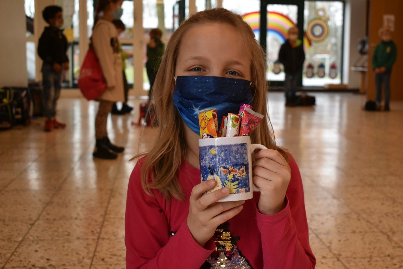 Bei der Preisverleihung in der Schule wurden nun die Klassensieger bekanntgegeben, die eine Bechertasse mit dem Aufdruck ihres Siegerbildes erhielten.