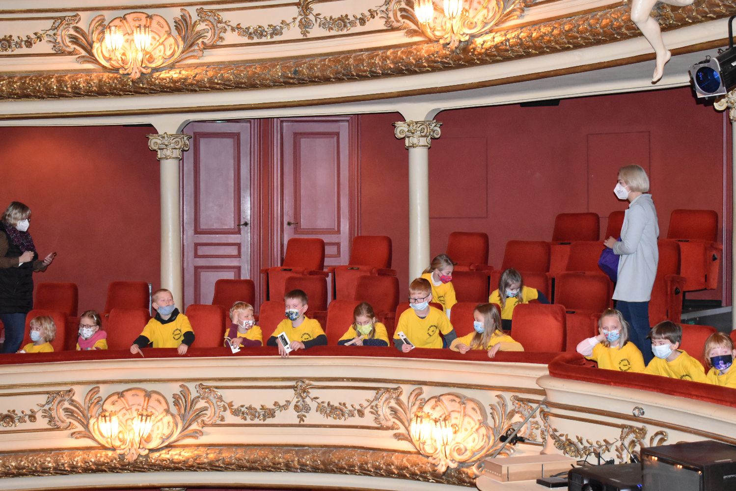 Schon das prächtige Theatergebäude selbst faszinierte die Kinder sehr und sie konnten es kaum erwarten, ihre Plätze einnehmen zu dürfen. Diese Atmosphäre im Theater wird ihnen ganz bestimmt in besonderer Erinnerung bleiben. Die ebenso musikalische wie humoristische Inszenierung war sehr unterhaltsam und begeisterte uns alle. Besonders ansprechend war auch das Bühnenbild mit den bunten Bergen und Kostümen. Schön, dass wir gerade in dieser Zeit die schönen bunten Bilder im Kopf mit nach Hause nehmen durften.