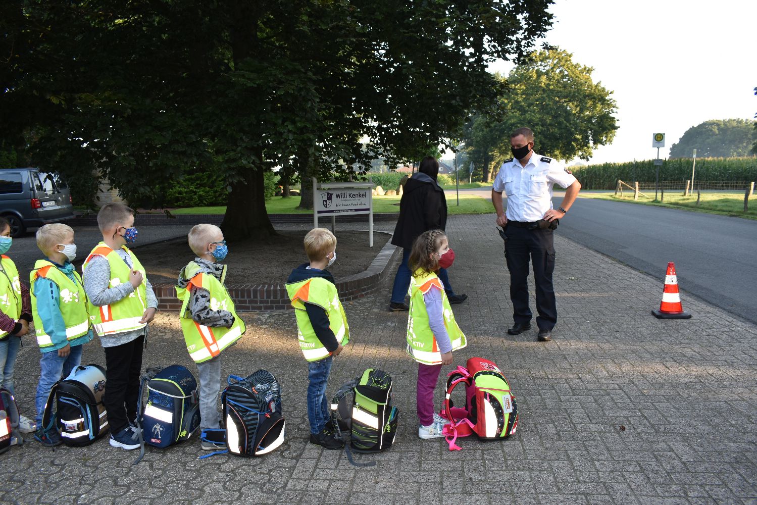 Da bald die dunklere Herbstzeit beginnt, bekamen die Erstklässler an diesem Tag auch die vom Förderverein gesponserten Warnwesten überreicht, die sie erstmals zum Busfahrtraining trugen.