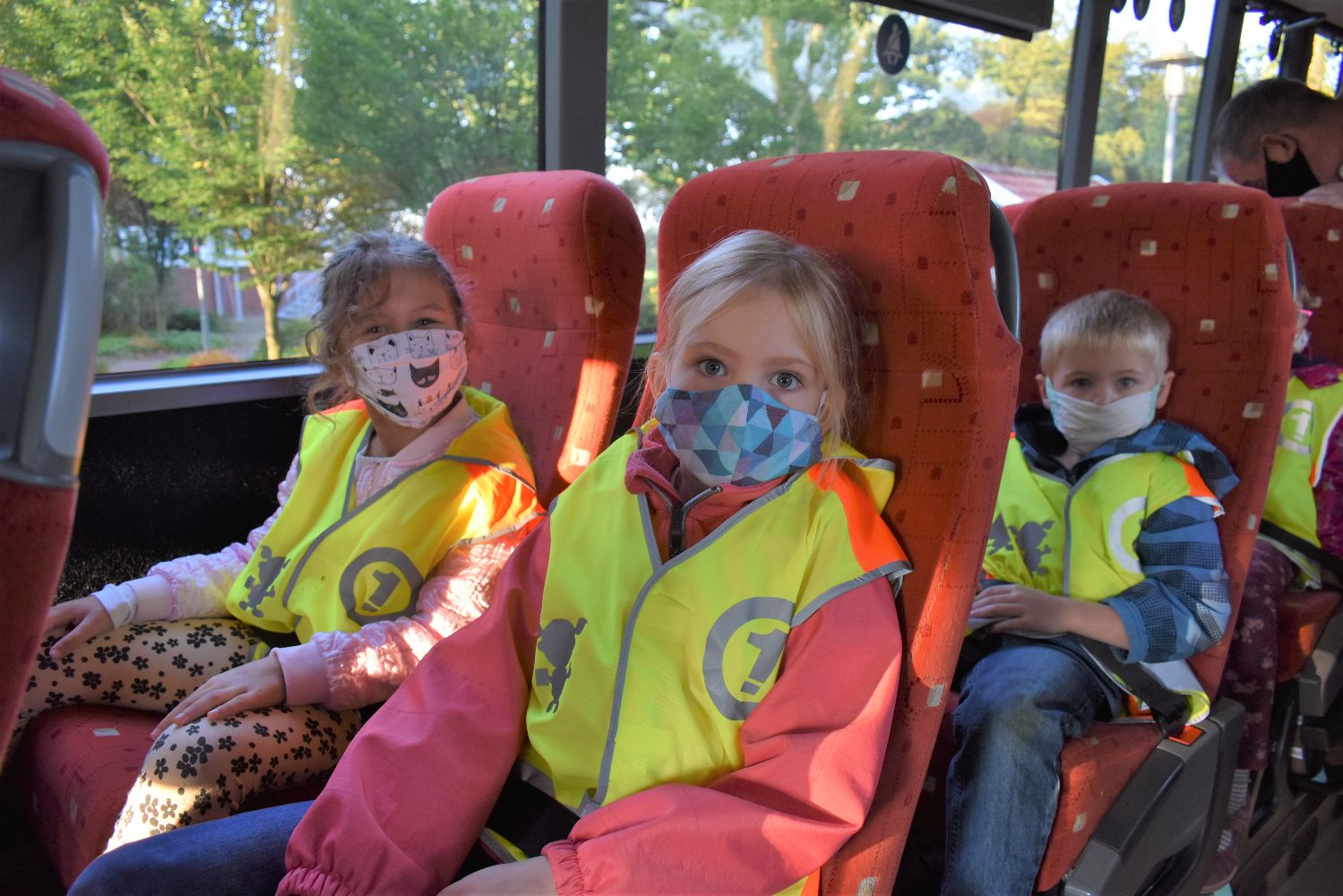 Da bald die dunklere Herbstzeit beginnt, bekamen die Erstklässler an diesem Tag auch die vom Förderverein gesponserten Warnwesten überreicht, die sie erstmals zum Busfahrtraining trugen.