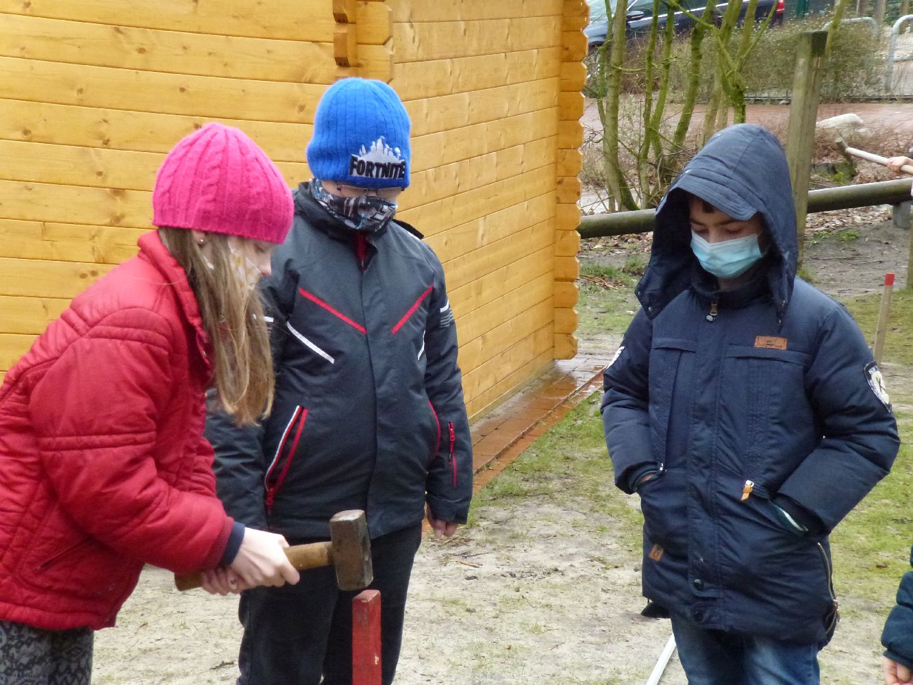 Eltern bekundeten ihre tatkräftige Mithilfe, Frau Hinxlage fand die Idee gut und Werkzeug, bzw. Planungsunterlagen und das Know-how brachte Herr Becker mit.
