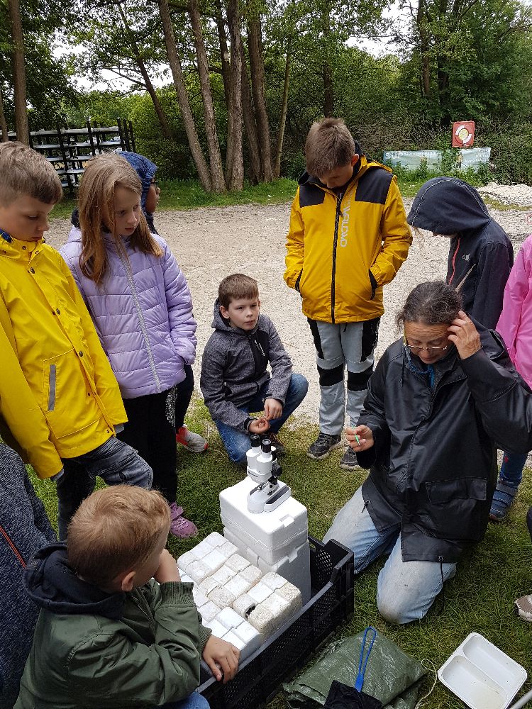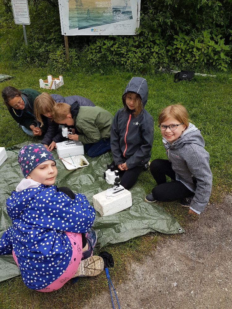 Wer viel für Tiere übrig hatte, kam am zweiten Tag auf seine Kosten. Mit Keschern und Mikroskopen bewaffnet ging es am Donnerstagmorgen zum Seeufer des Zwischenahner Meeres “auf Tauchstation“. Nachdem unsere Schülerinnen und Schüler spielerisch etwas über das Ökosystem “Seeufer“ erfahren hatten, konnten sie viele spannende Kleinstlebewesen aus dem Wasser entdecken. Mit ihren interessanten Fresswerkzeugen verwandelten sie sich durch das Binokular geradezu in kleine Monster.