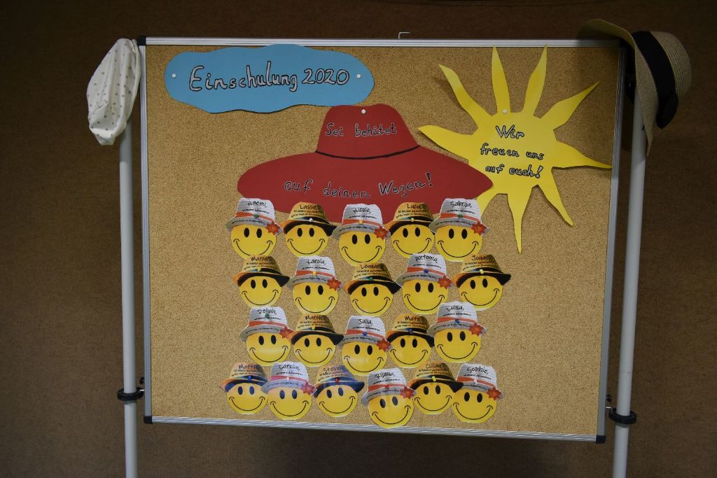 Unter diesem Motto konnte bedingt durch die Corona-Pandemie unsere Einschulung in diesem Jahr zwar nur im kleinen Rahmen stattfinden, aber dennoch konnten wir unseren 21 Erstklässlern zur Freude aller eine feierliche Aufnahme in die Schulgemeinschaft ermöglichen. Nachdem Frau Stallo-Menke als Schulleitung die Kinder herzlichst in der “Pinguinklasse“ begrüßt hatte, überreichte die Klassenlehrerin Ulrike Kaiser den ihr anvertrauten Kindern unter dem Motto “Sei behütet auf all deinen Wegen“ einen kleinen, glücklichen Smiley mit Hut zur Erinnerung an diesen besonderen Tag. Mit einer kurzen Videobotschaft wandten sich auch die Vertreter der katholischen und evangelischen Kirche an unsere Schulneulinge.