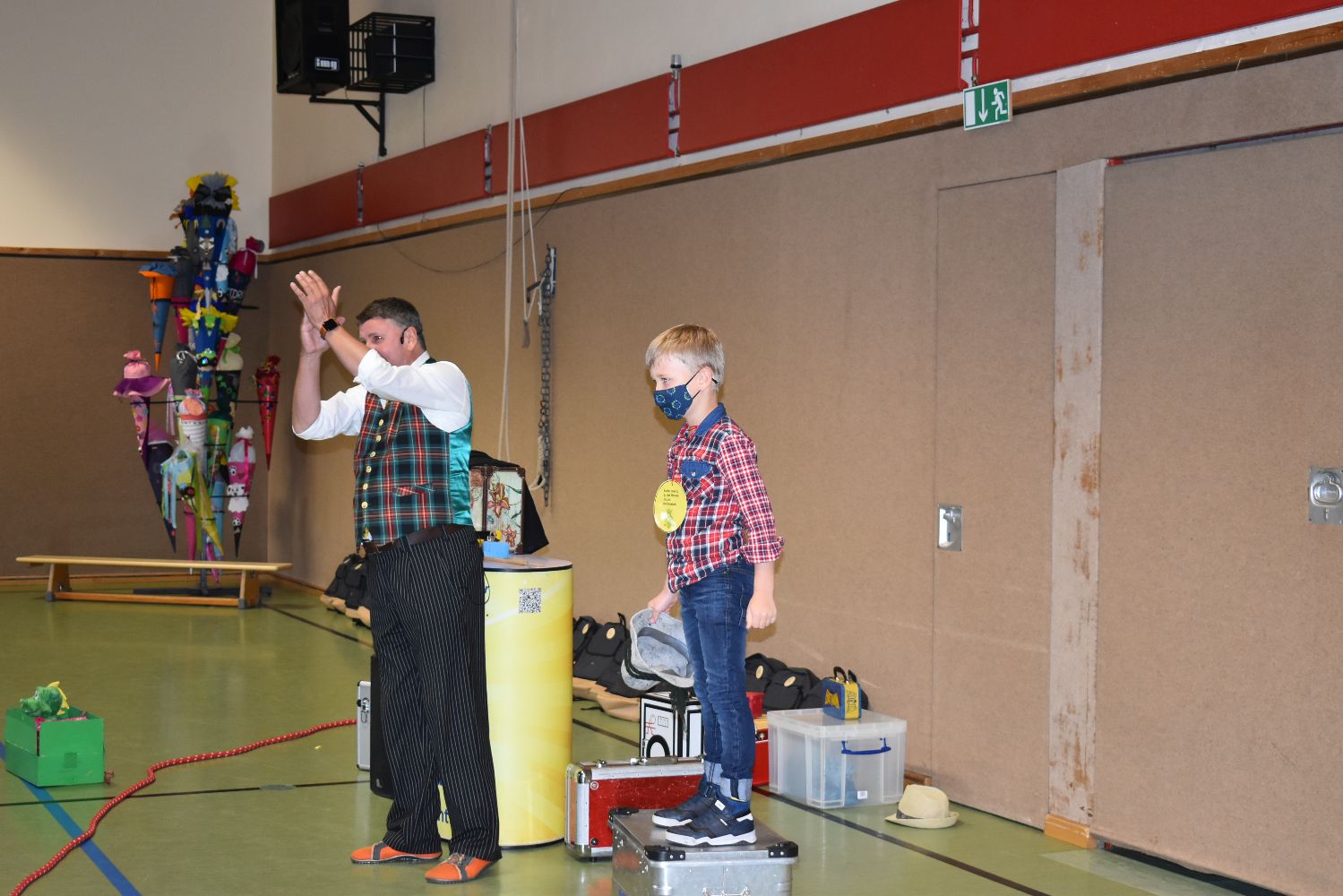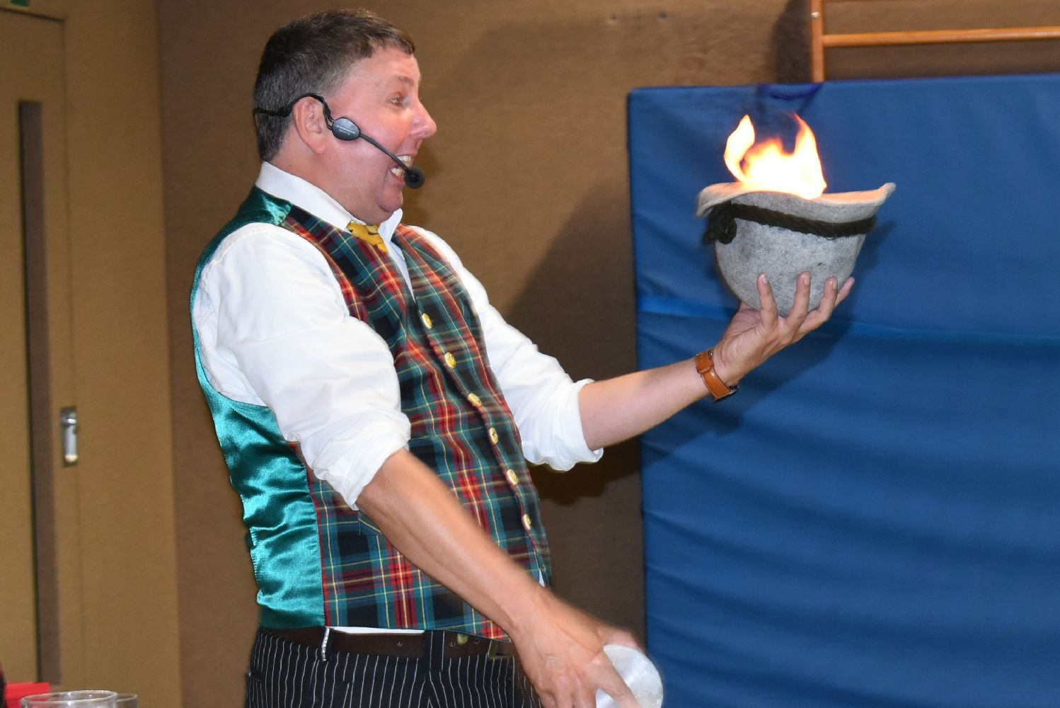 Im Anschluss daran unterhielt der Clown Holger Blumentritt die Erstklässler und alle anderen anwesenden Gäste mit einer gelungenen und lustigen Zaubershow, bei der nicht nur die Kinder herzlich lachen mussten. Immer wieder bezog er die Kinder mit ein und so verging die einstündige Vorführung wie im Flug.