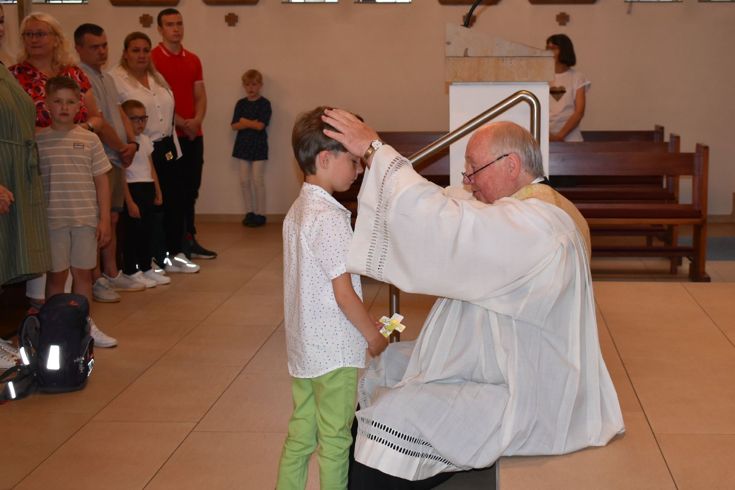 Unter diesem Motto wurden am Samstag, dem 19.08.2023, 28 Schüler/innen feierlich in unsere Schulgemeinschaft aufgenommen. Die Einschulungsfeier begann um 9.00 Uhr mit einem ökumenischen Wortgottesdienst in der St-Josef-Kirche in Beverbruch. Zur Erinnerung an diesen Wortgottesdienst erhielten die Kinder der Klassen 1a und 1b ein kleines Kreuz mit einem bunten Regenbogen.