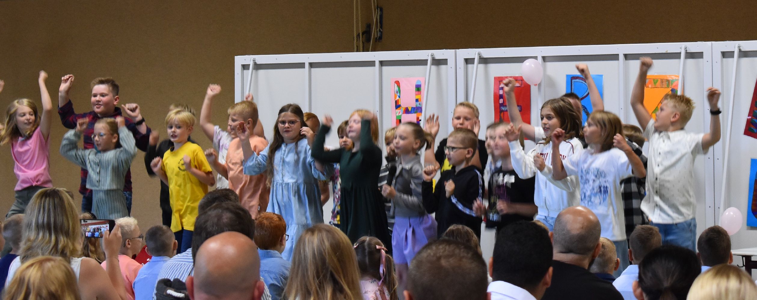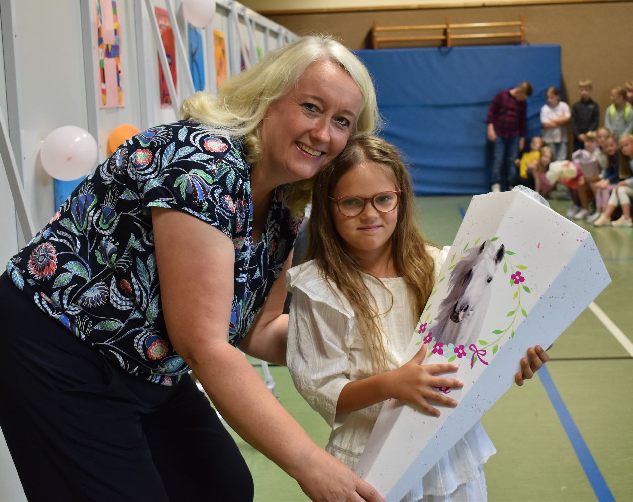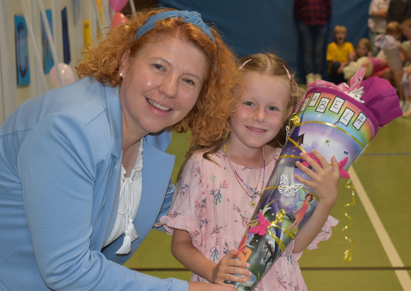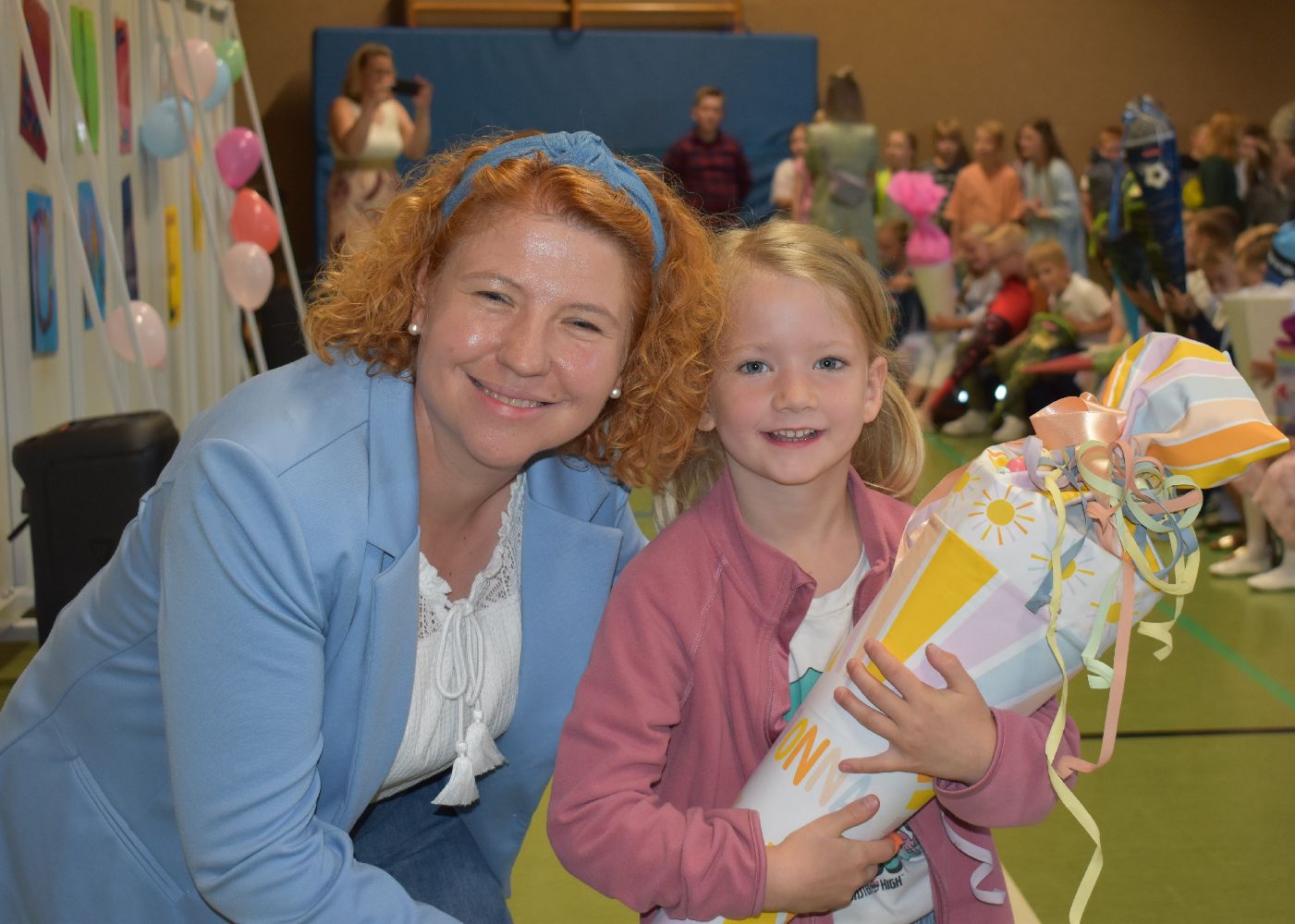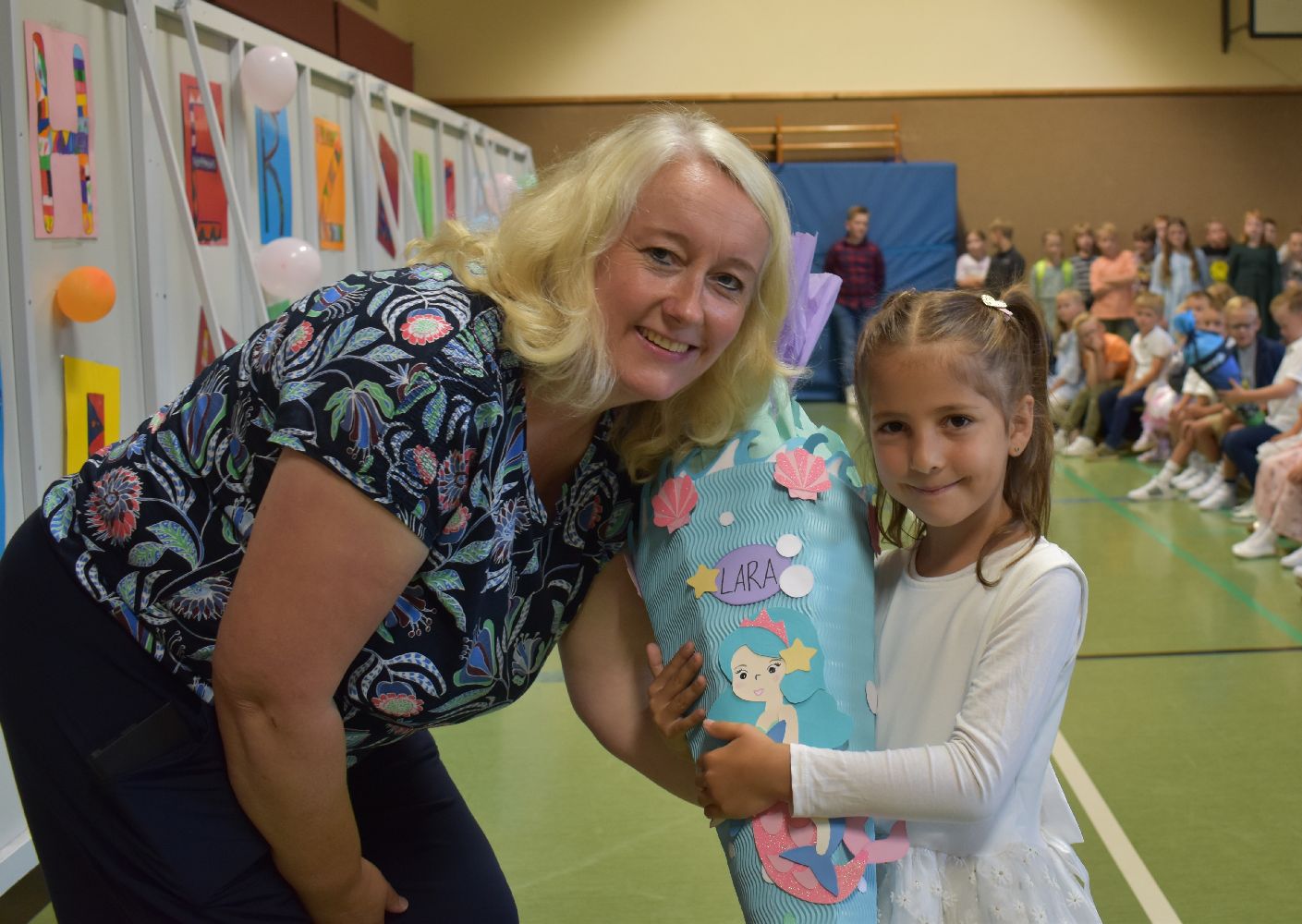 Im Anschluss daran versammelten sich Eltern, Kinder, Lehrer, Gäste und natürlich unsere Erstklässler in der Beverbrucher Turnhalle. Die Schülerinnen und Schüler der Klasse 4 hatten unter der Leitung von Frau Hensel und Herrn Ziplys die diesjährige Einschulungsfeier vorbereitet und unterhielten unsere Schulneulinge mit einem Willkommensliedern und kleinen Sketchen aus dem Schulalltag. Im Anschluss daran überreichten die Lehrkräfte die wunderschönen Schultüten an die Kinder.