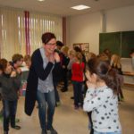 Der 2. Tag, der “orange Tag“, handelte von Krankheit und Leid. Nachdem die Kinder von ihren bisherigen Krankheitserlebnissen berichtet hatten, stellten sie eine Krankheit pantomimisch dar, die von den anderen Gruppen erraten werden musste. Das machte allen Beteiligten viel Spaß, wie man auf den Fotos sehen kann. Anschließend kam es zu einer sehr interessanten Fragerunde. Der ehemalige Chefarzt Dr. Klaus stellte sich eine Stunde lang den Fragen der wissbegierigen Kinder. Und diese Fragen hatten es in sich! Sie handelten von vergrößerten Lymphknoten, Schlaganfall, Herzinfarkt, Blutkrebs, Asthma, Epilepsie, Gürtelrose und Allergien, aber auch von der Herstellung und Entwicklung der Medikamente. „Ich komme mir ja fast vor wie in meinem Examen, so anspruchsvoll sind eure Fragen“, meinte Dr. Klaus lachend. Aber natürlich waren auch einige persönliche Fragen dabei, die Dr. Klaus den Kindern gerne beantwortete. Die Abschlussgedanken dieses Tages, was einem bei Krankheit hilft und wie man selbst einem Kranken helfen kann, hielten die Drittklässler auf Plakaten fest.