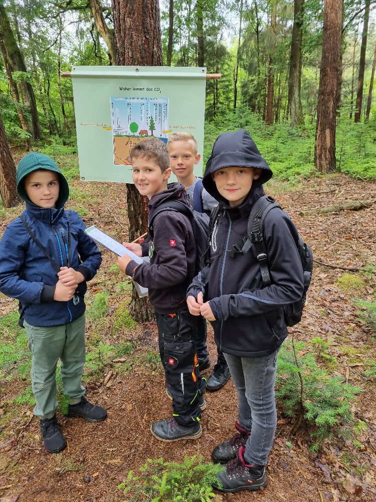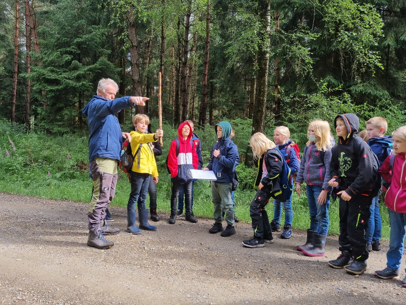 Was ist überhaupt der Klimawandel? Und: Was hat er mit mir zu tun? Warum spielt der Wald hierfür eine Rolle? Dies sind nur wenige Fragen, mit denen sich die Kinder der Klasse 4 im Rahmen des Tagesausfluges zum Waldpädagogikzentrum in Ahlhorn am 22.06. beschäftigt haben. Die Waldpädagogen und Förster Herr Wieting und Frau Freise nahmen sich den gesamten Vormittag ehrenamtlich Zeit, die Kinder erlebnisorientiert in die Thematik einzuführen. Der Vormittag gestaltete sich dabei sehr abwechslungsreich in 2 Teile: Nach einer kurzen Vorstellung ging es direkt in den Wald hinein und die Kinder konnten sich an verschiedenen Stationen Wissenswertes zum Klimawandel aneignen. Ein kleiner Quizzettel sowie das Stationslernen in freier Natur motivierten die Kinder dabei sehr. Sie wurden zu echten Klimaexperten und konnten am Ende so einige Fragen zum Klimawandel beantworten. So z.B.: Was sind die Ursachen und Auswirkungen des Klimawandels? Der erste Part wurde durch ein bewegungsaktives Spiel – „der Treibhauseffekt“ – abgerundet, bei dem aller Kinder noch einmal auf spielerischer Art und Weise ihr Wissen vertiefen konnten. Ein gelungener Abschluss!