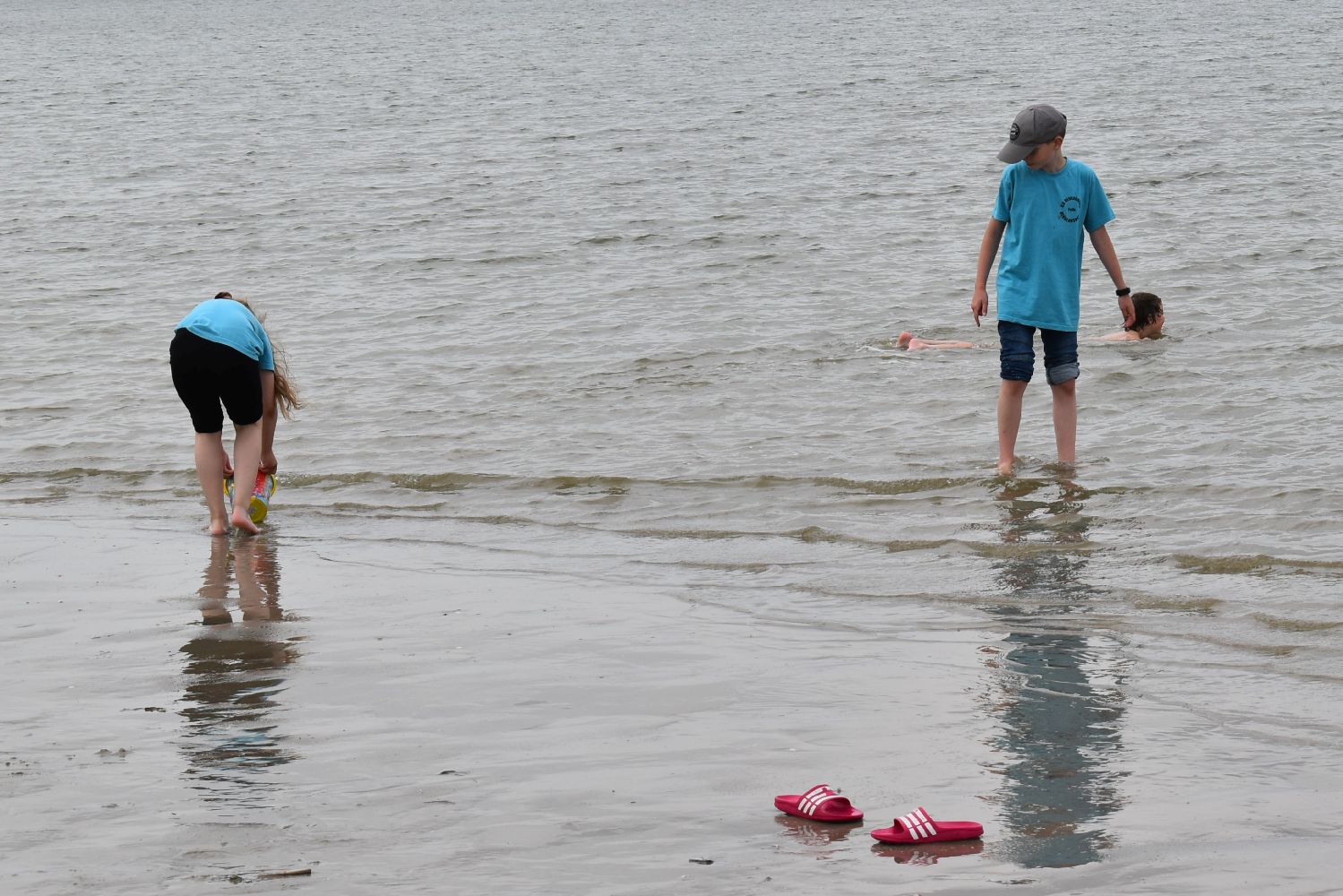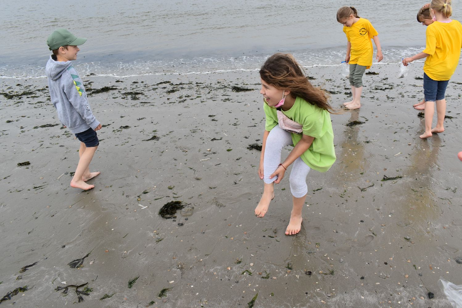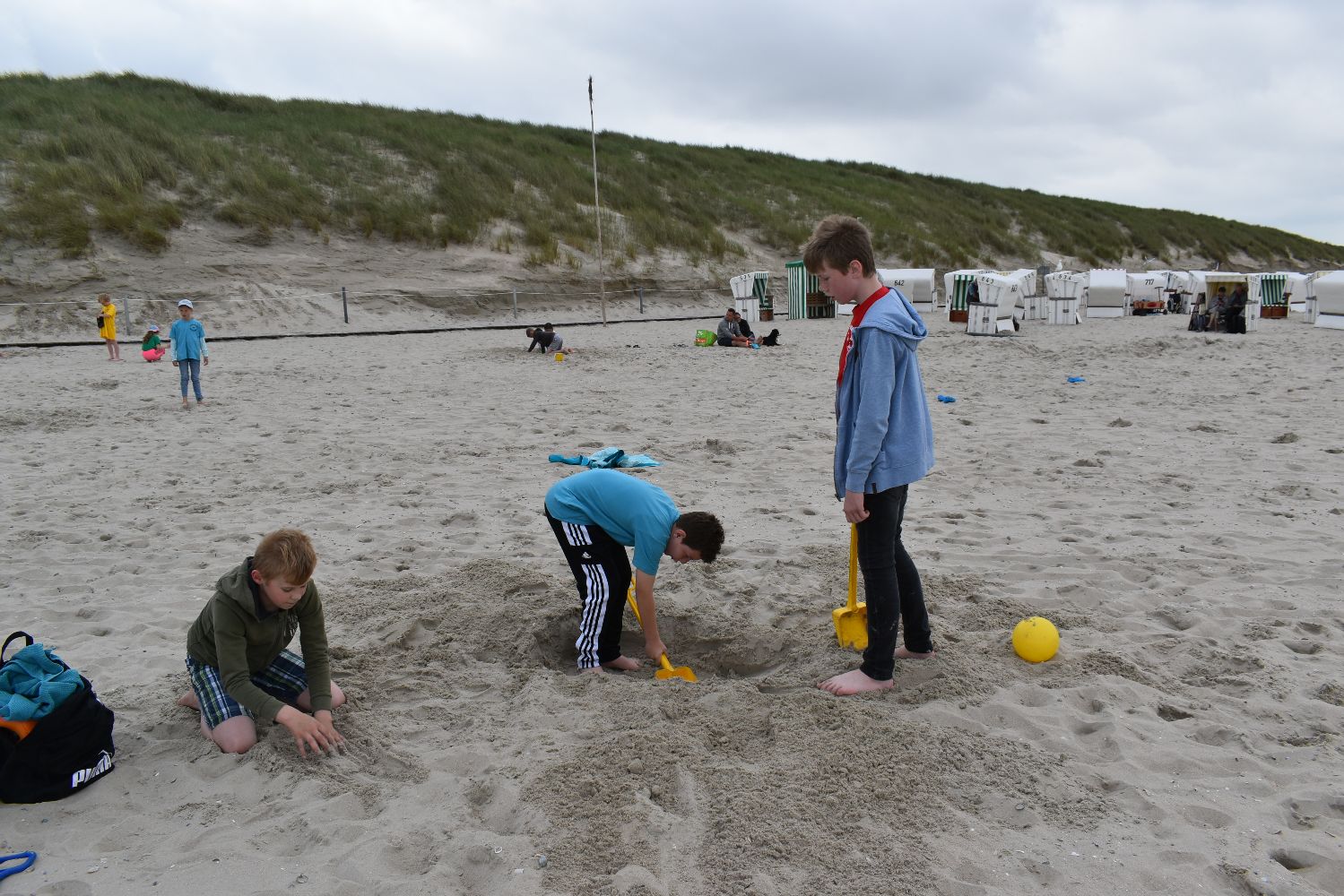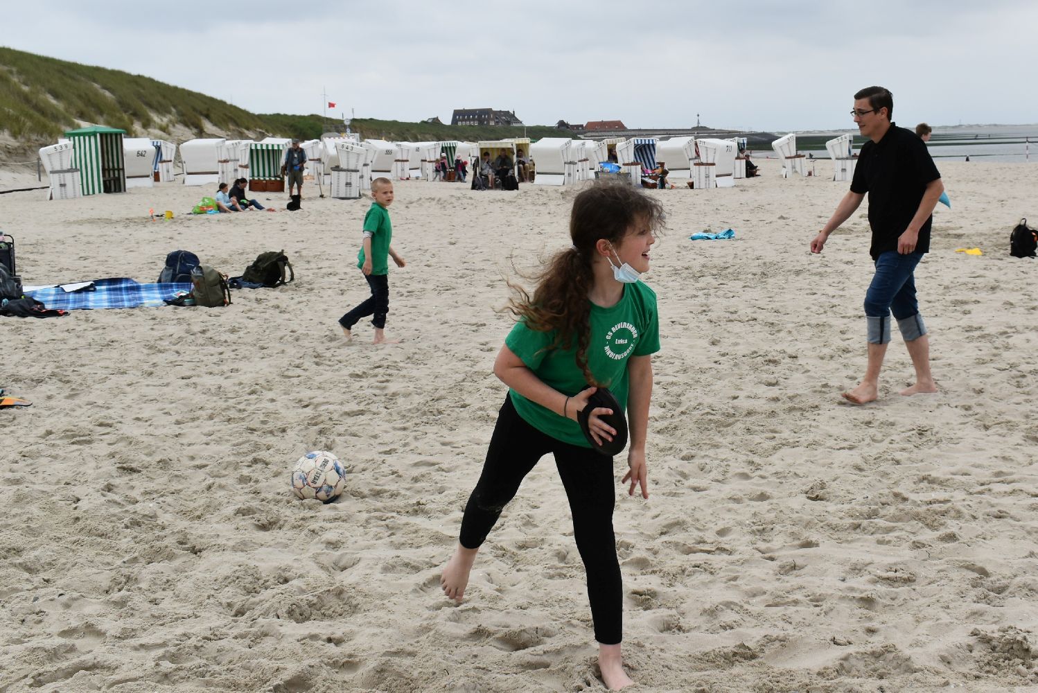 Auch das Wetter spielte recht gut mit. Zwar fehlte zumeist die Sonne, aber es war fast immer trocken, die Temperatur war angenehm und der Wind nur mäßig. So konnten die Kinder am Strand viele Stunden buddeln und spielen, im flachen Wasser toben, Muscheln suchen und Quallen und Strandkrabben beobachten. Viele Kinder trauten sich auch unter Aufsicht ins Meer und hatten ihren Spaß. Für ein gemeinsames Mittagessen im “Strandcafe“, das von unserem Förderverein gesponsert wurde, war im Vorfeld gesorgt und die frische Seeluft machte Appetit. Der Inseltag verging wie im Flug und um 17.00 Uhr legte die Fähre mit uns an Bord wieder ab in Richtung Festland. Sicher wird dieser Tag als ein besonderes Highlight im Gedächtnis der Kinder bleiben.