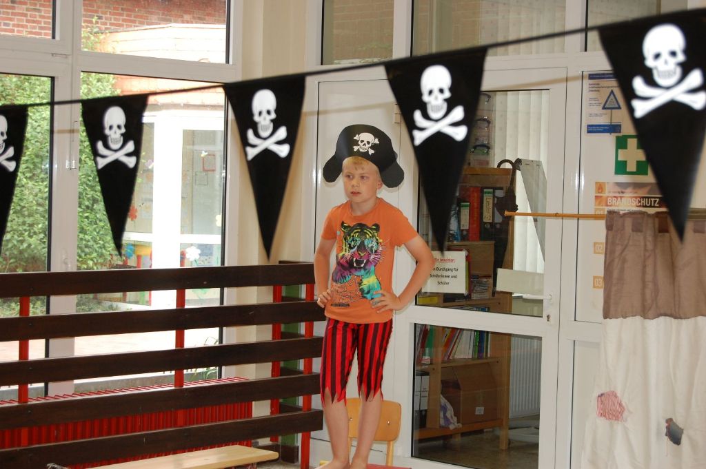 Mit einem Piratenfest verabschiedeten sich die Zweitklässler vom Standort Beverbruch, denn nach den Sommerferien werden sie die letzten beiden Jahre ihrer Grundschulzeit am Standort in Nikolausdorf verbringen.