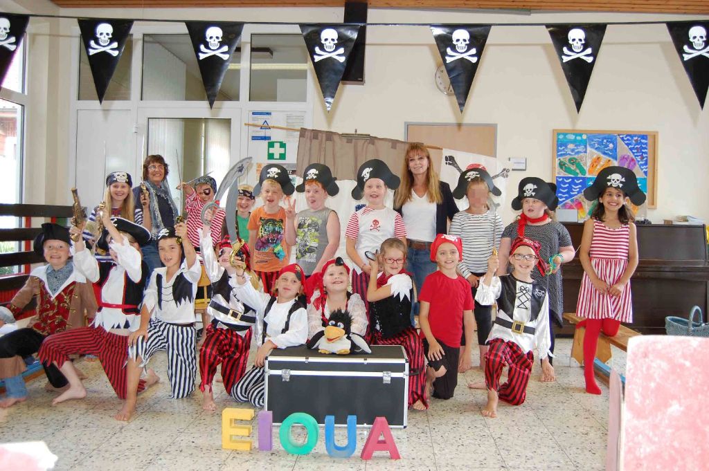 Nachdem die Zweitklässler ihre Eltern mit einem einstudierten Piratenmusical überrascht hatten, ging es erst einmal im Dorf auf Schatzsuche. Anschließend folgte der gemütliche Teil mit einem gemeinsamen Essen und netten Gesprächen. Auf diesem Fest bedankten sich die Kinder und ihre Eltern auch bei der pädagogischen Mitarbeiterin Annette Bahlmann für die schöne Betreuungszeit in den letzten zwei Jahren und den Kindern war anzumerken, dass sie die schönen gemeinsamen Stunden vermissen werden.
