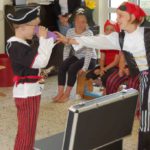 Nachdem die Zweitklässler ihre Eltern mit einem einstudierten Piratenmusical überrascht hatten, ging es erst einmal im Dorf auf Schatzsuche. Anschließend folgte der gemütliche Teil mit einem gemeinsamen Essen und netten Gesprächen. Auf diesem Fest bedankten sich die Kinder und ihre Eltern auch bei der pädagogischen Mitarbeiterin Annette Bahlmann für die schöne Betreuungszeit in den letzten zwei Jahren und den Kindern war anzumerken, dass sie die schönen gemeinsamen Stunden vermissen werden.
